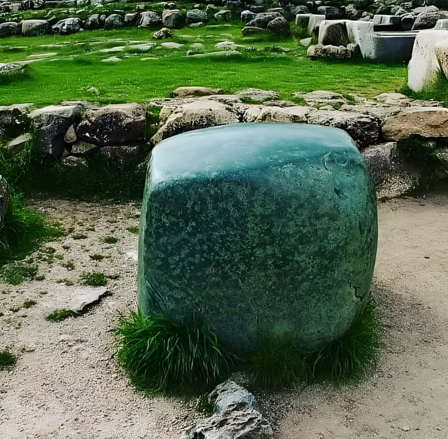 히타이트 Hittite 제국 수도였던 터키 하투사 Hattusa 에 있는 수수께끼 같은 대성전 Great Temple 에메랄드 녹색 돌 Green Stone.