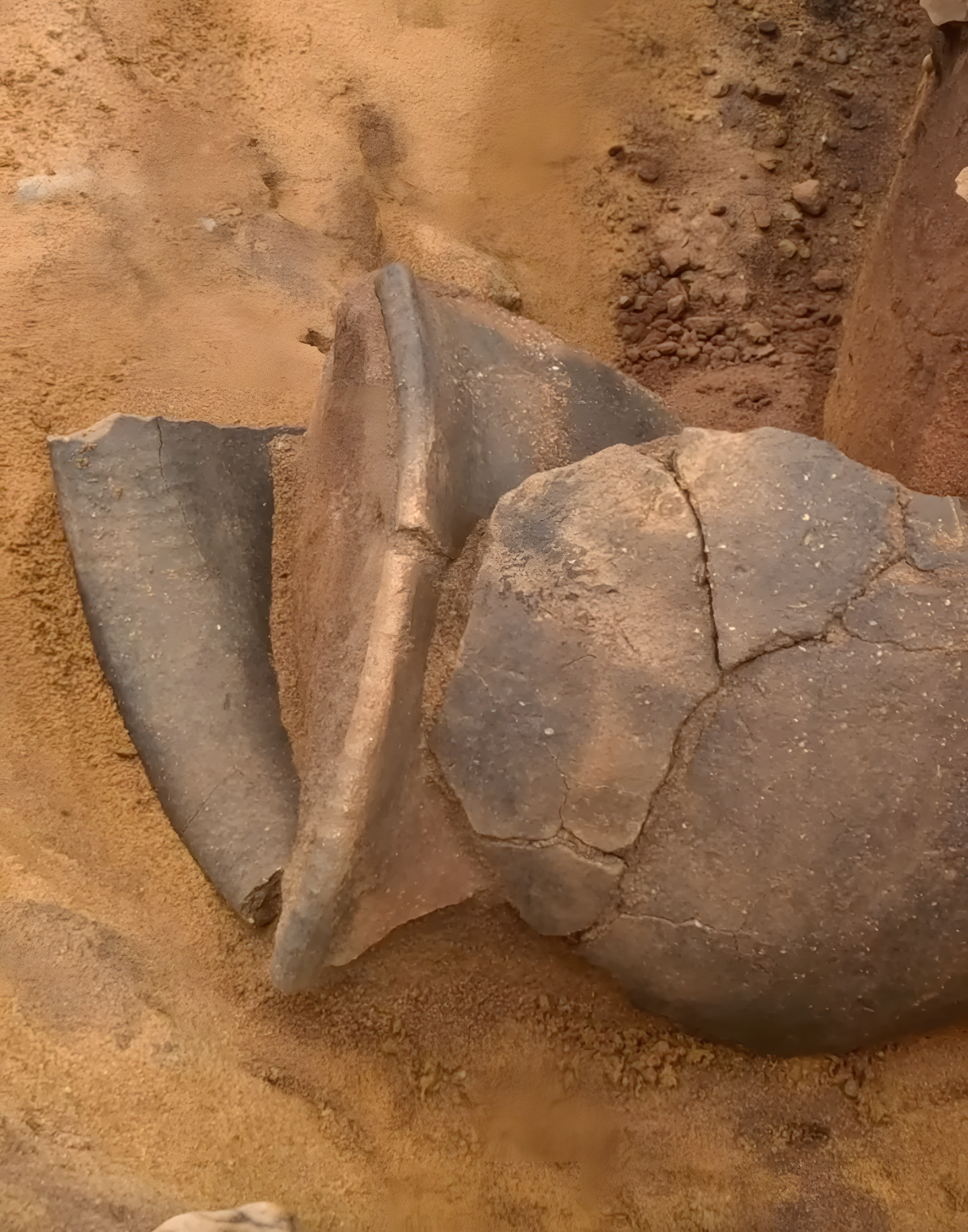 발굴 작업 중 – 서퍽의 모래 토양에서 희귀한 콥트식 용기Coptic bowl가 발견되었다. © 옥스퍼드 코츠월드 고고학회