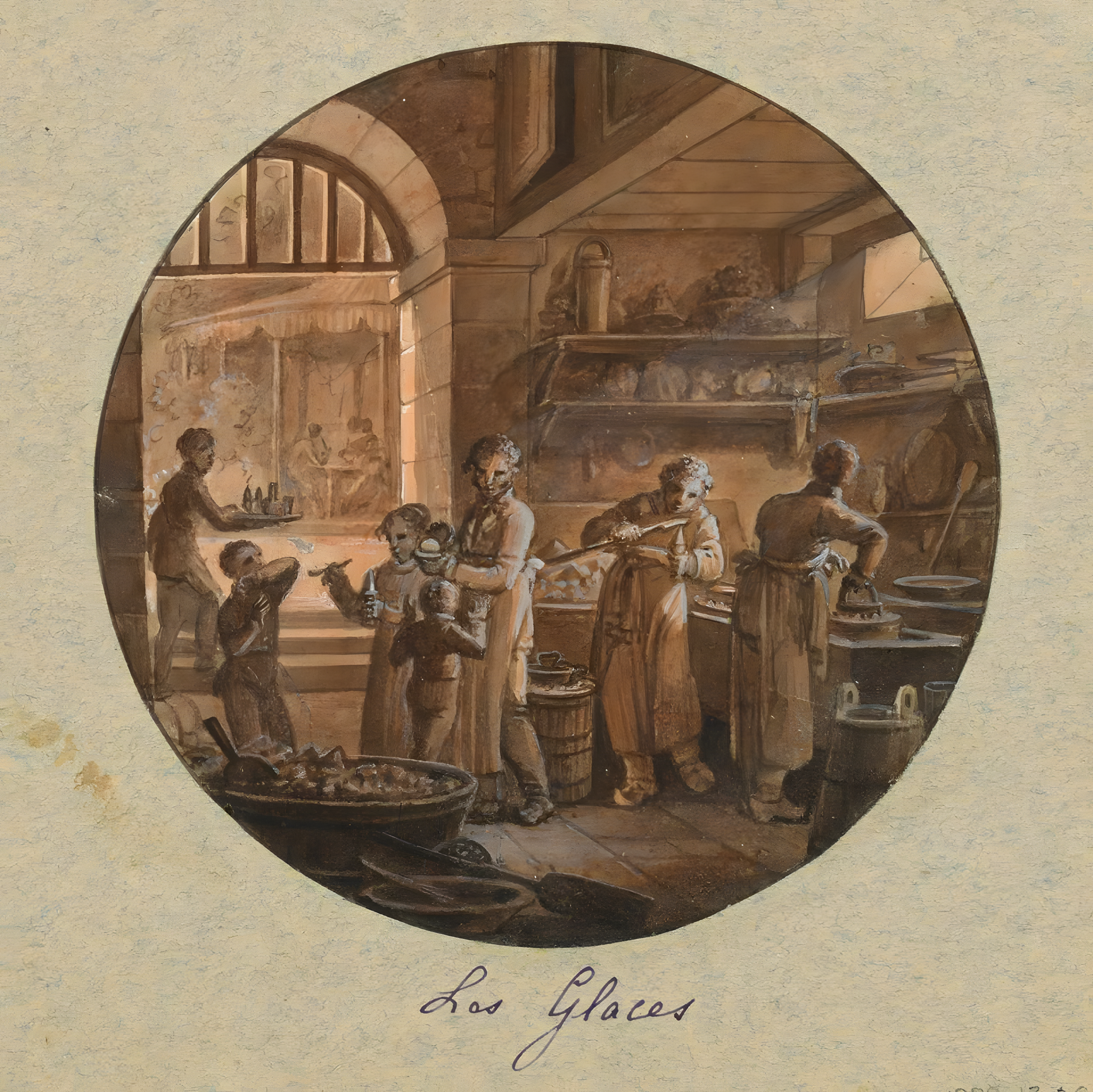 초기에는 알갱이가 씹히는 듯한 슬러시 같은 디저트가 만들어졌다. 오늘날 우리가 알고 있는 아이스크림과 같은 결과물을 만들어낸 레시피는 귀족 후원자들의 가정을 관리하던 사람들이 개발했다.