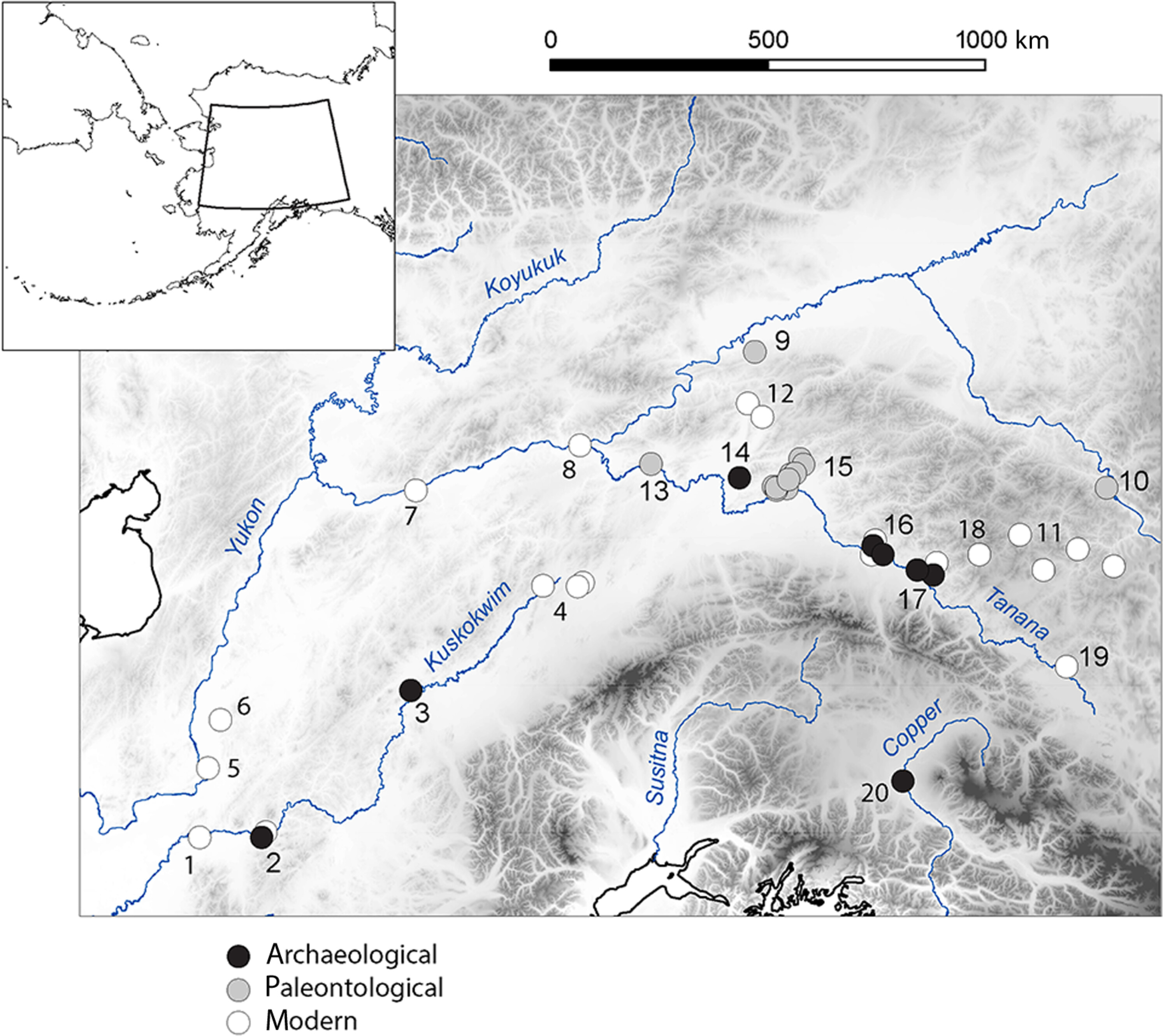 알래스카 타나나 계곡Tanana Valley 고고학 작업은 1930년대부터 진행되었으며, 연구자들은 멘다스 차그족Mendas Cha’ag people을 대표하는 힐리 레이크 마을 의회Healy Lake Village Council와 정기적으로 협의하고 있다.