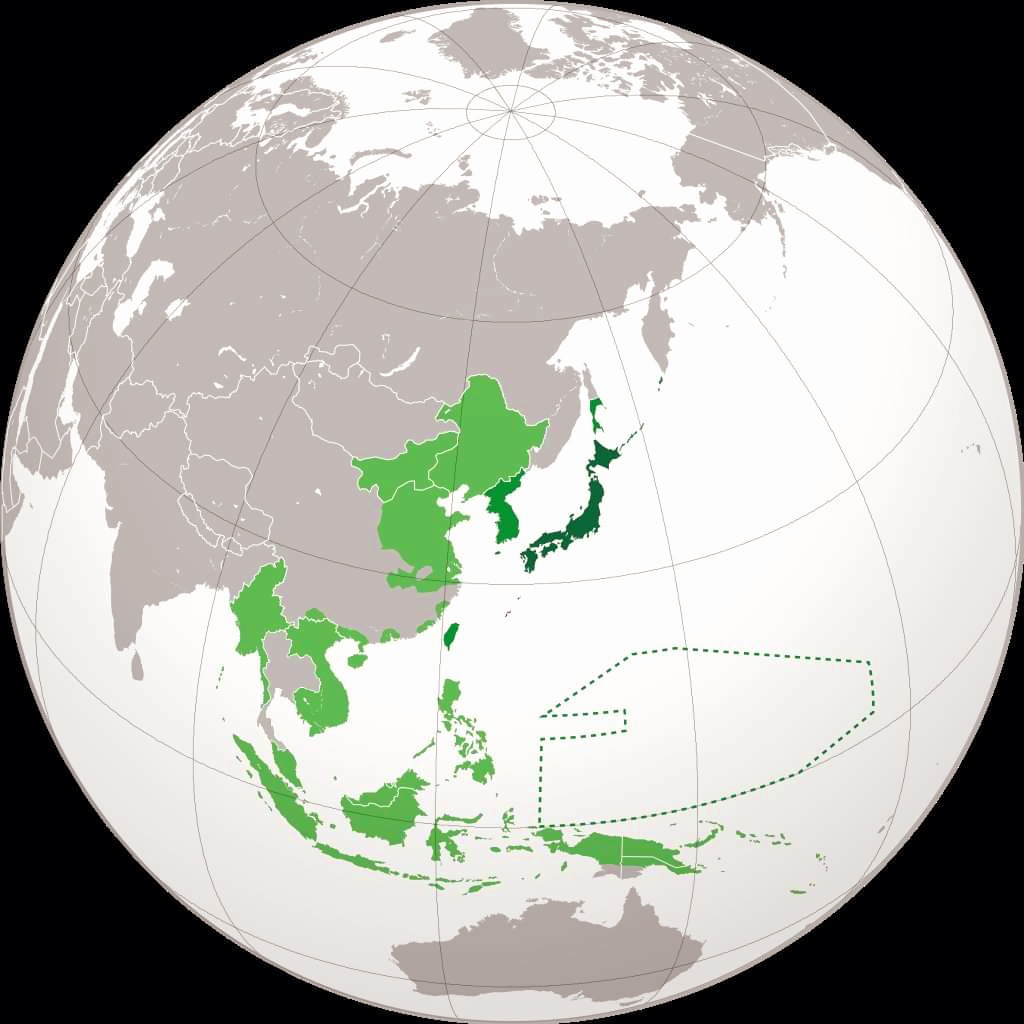 제국시대 일본이 영토 확장 정점에 이른 1942년 그 판도다.