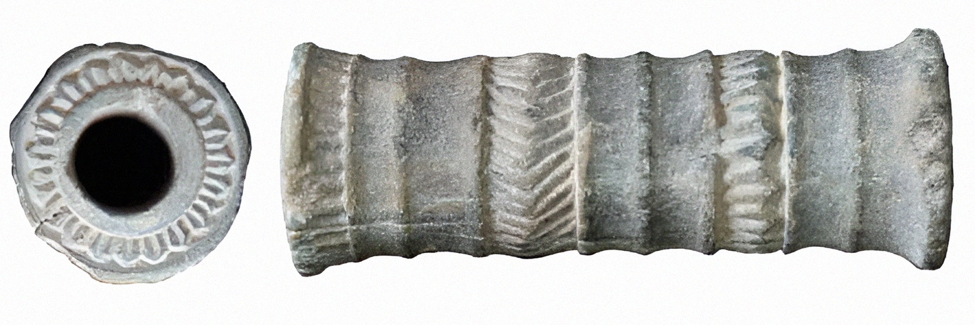 이란 남동부 도시 지로프트 Jiroft 라는 데서 발굴한 4천 전 작은 석조 바이알 vial (약병).