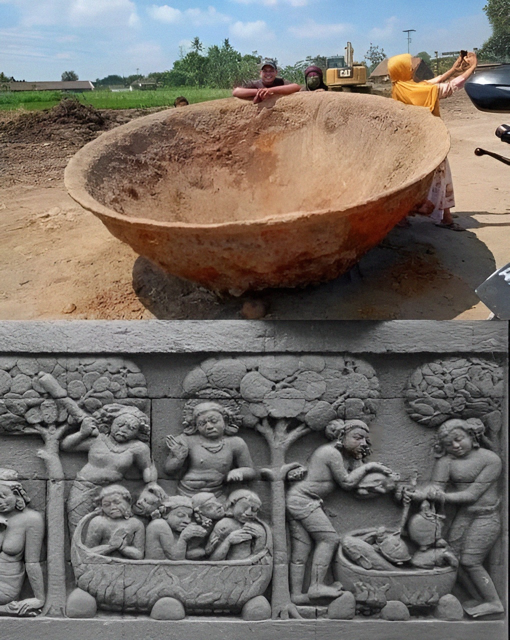 이는 2021년 8월 31일 인도네시아 반툴 Bantul 에서 도로 공사 중 우연히 발견된 거대한 프라이팬처럼 생긴 유물이랜다.