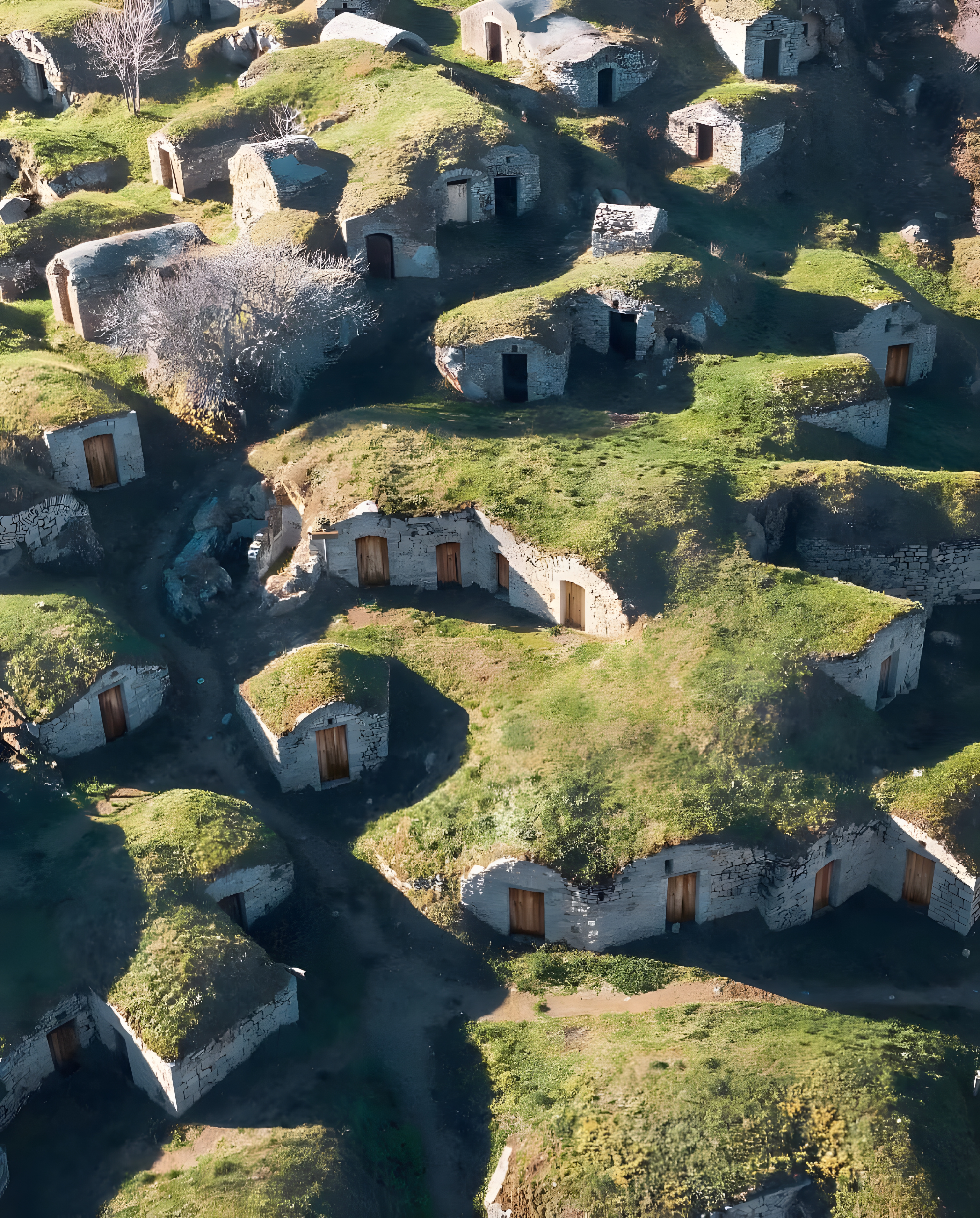 저 마을 모습 보면 선사시대 집들 보는 듯하다. 어쩌면 무덤 같이도 보인다.
