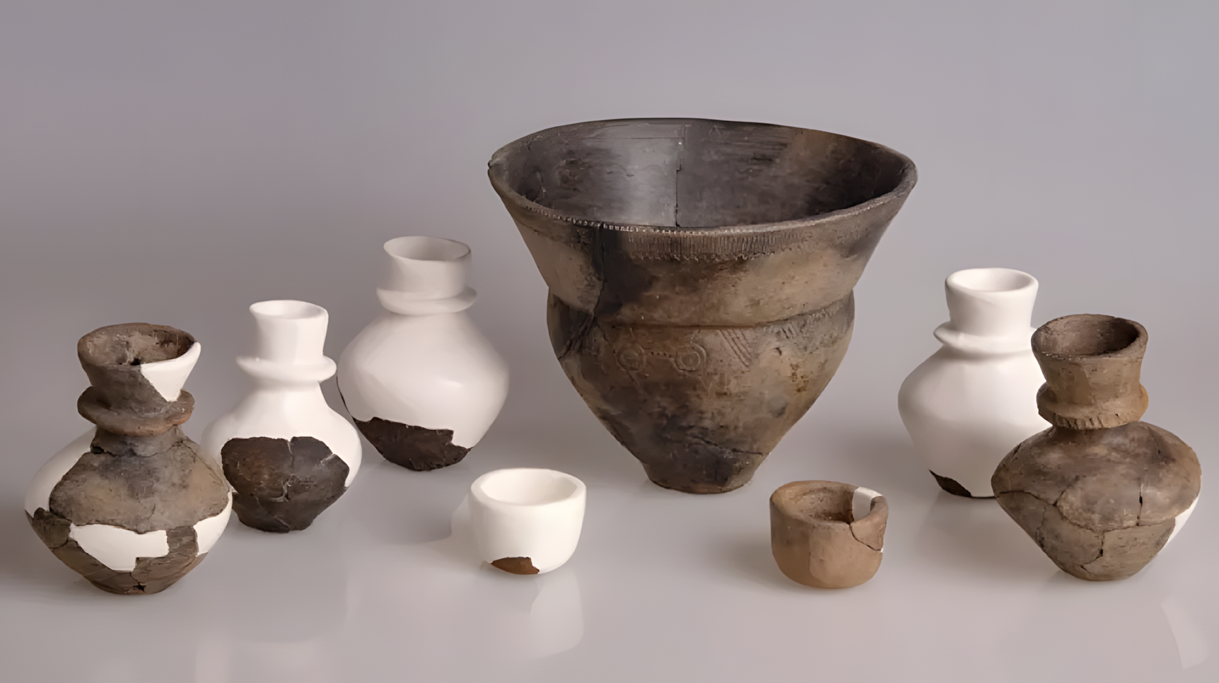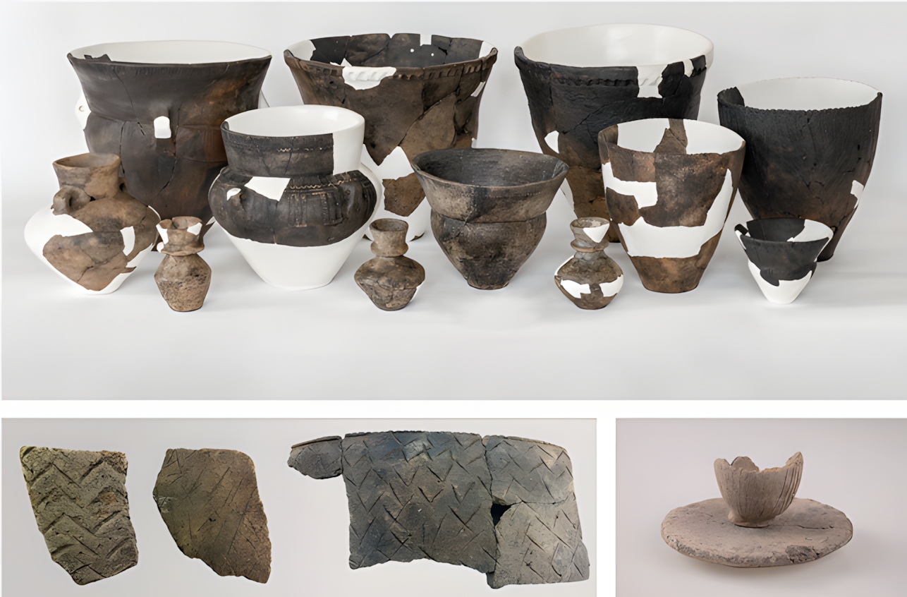 "신석기 시대 정착지 유적에서 6,000점이 넘는 도기 조각이 발굴되었습니다. 이 중 가장 흥미로운 것은 '제사용 그릇'으로 추정되는 한 세트였는데, 깔때기 모양 큰 잔 하나, 테두리가 있는 작은 병 다섯 개, 그리고 작은 도기 유리잔 두 개로 구성되어 있었습니다.