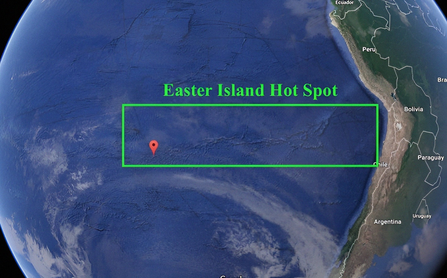 이스터섬은 나즈카 판 Nazca Plate 안에 위치하며 하와이 섬 사슬 Hawaiian Island chain 과 비슷한 화산 핫스팟이다. 이 핫스팟은 태평양이 동태평양 상승을 통해 열리면서 이스터섬 동쪽에 걸쳐 있는 샐레이 고메즈 능선 Sala y Gomez ridge 을 만들어냈다.