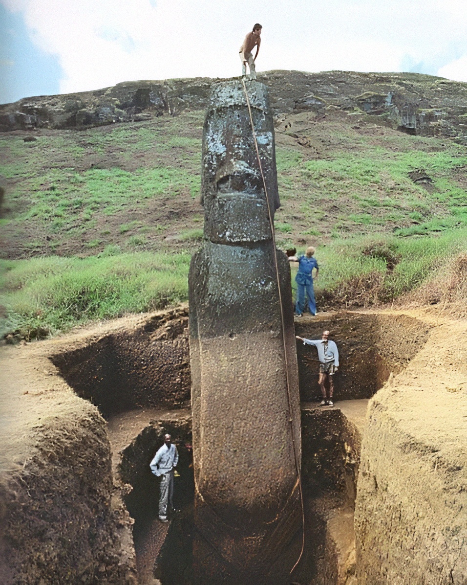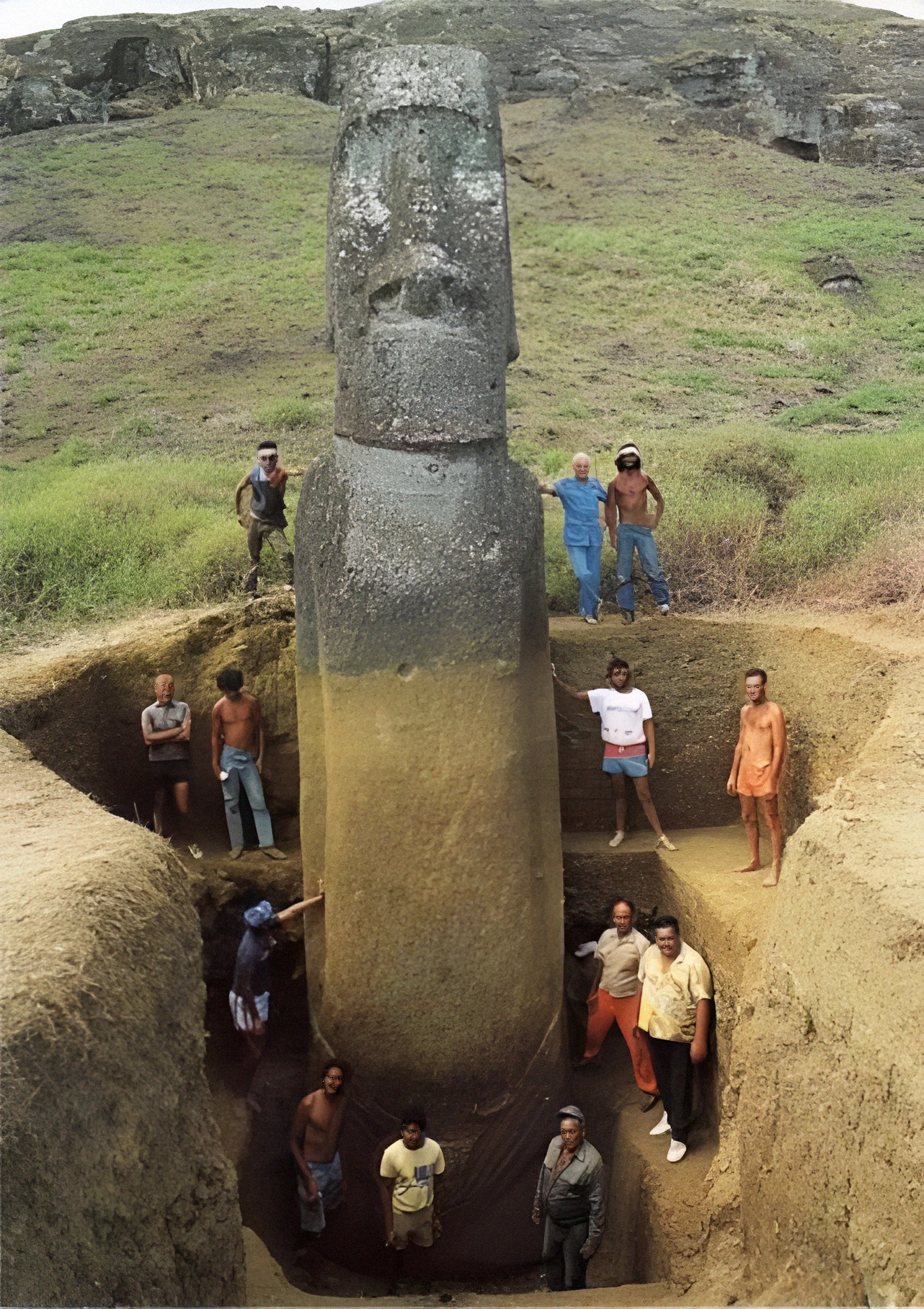 내친 김에 궁금해서 moai statue excavation 라는 키워느로 구글링하니 저와 같은 장면도 뜬다.