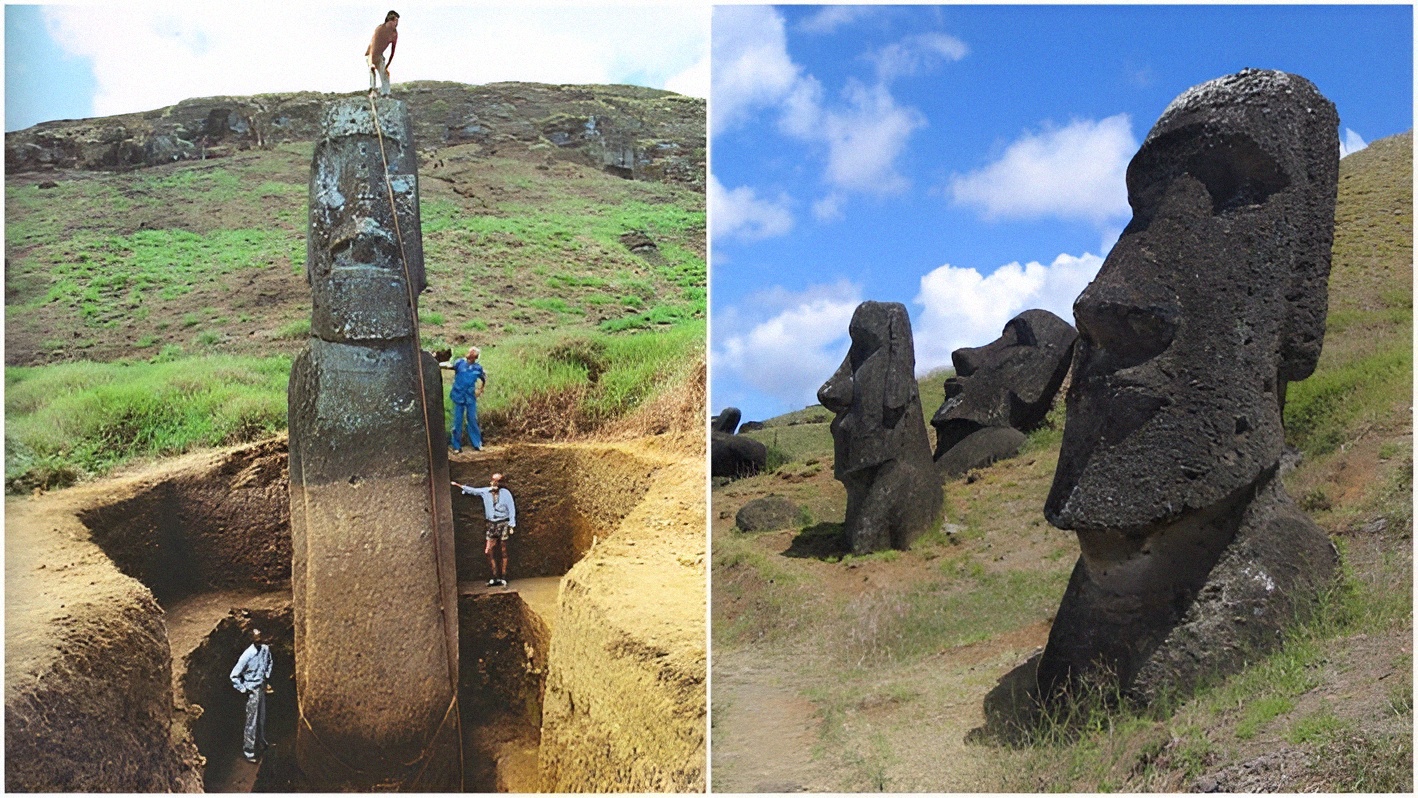 내친 김에 궁금해서 moai statue excavation 라는 키워느로 구글링하니 저와 같은 장면도 뜬다.