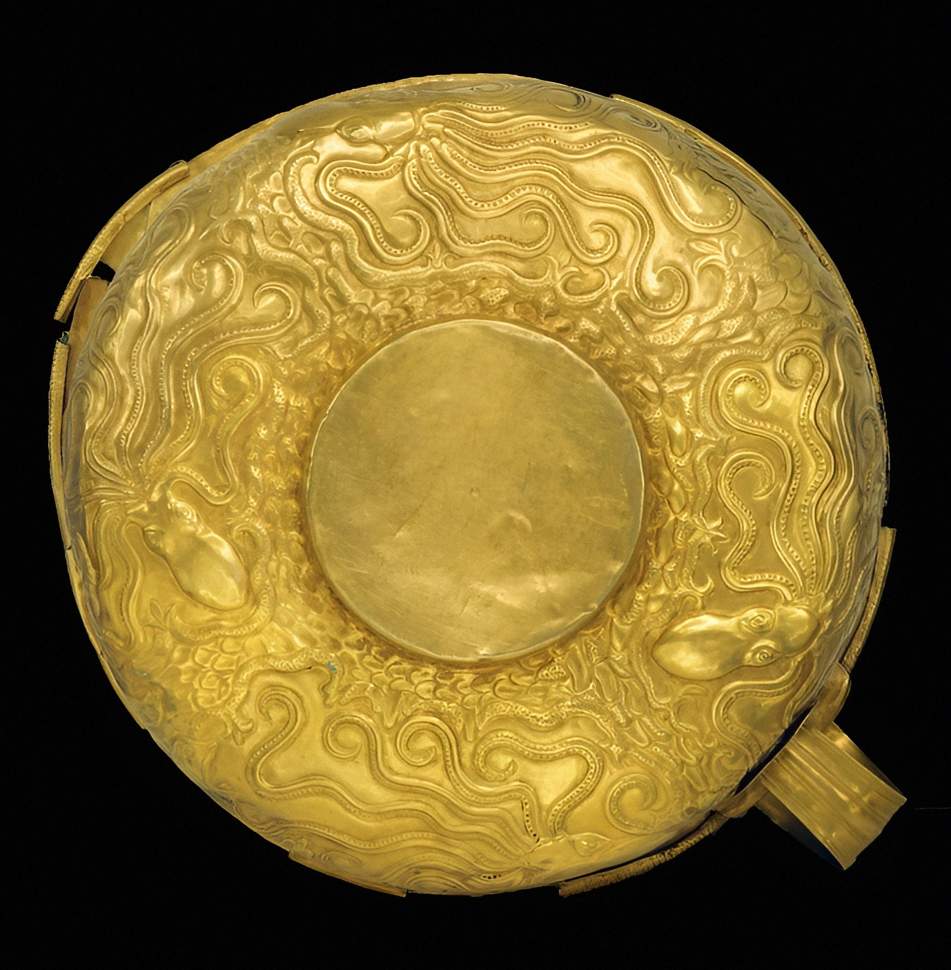 껴묻거리 중에는 생생한 해저 풍경이 담긴 화려한 황금 컵이 있었다.