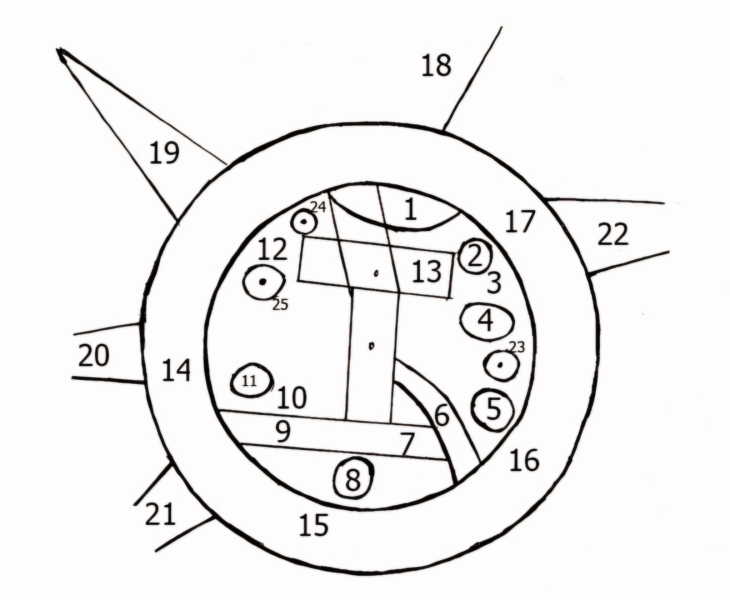 메소포타미아는 원형 "쓰라린 강 bitter river"이나 대양으로 둘러싸여 있으며, 7~8개 외국 지역은 아마도 산으로 상상되는 바다 너머 삼각형 섹션으로 묘사된다.