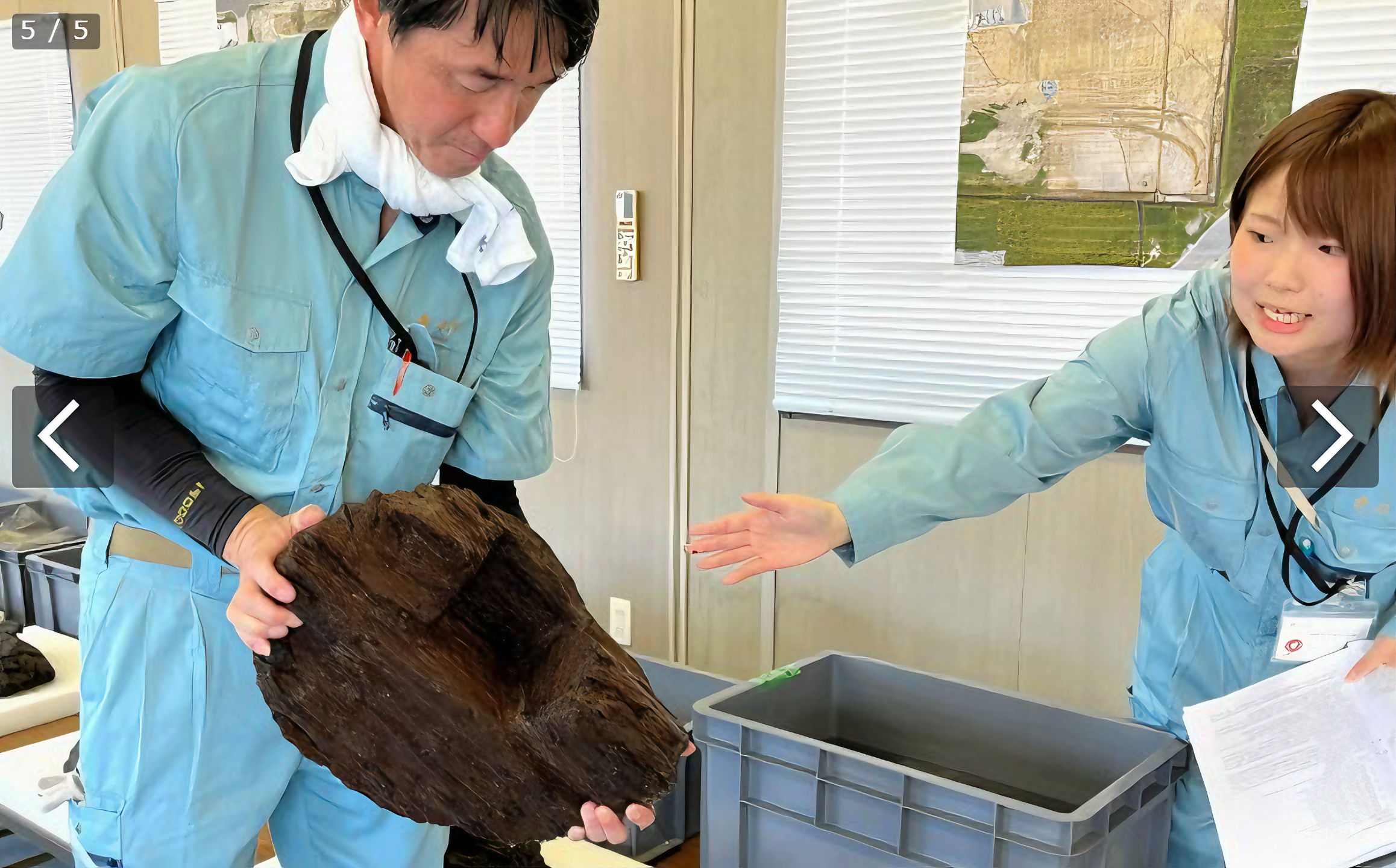 이 센터에 의하면, (이런 목제 유물이 여러 점인지) 큰 것은 긴쪽 지름 47·5센티미터, 짦은 거리 지름 44센치 반구형이라고.