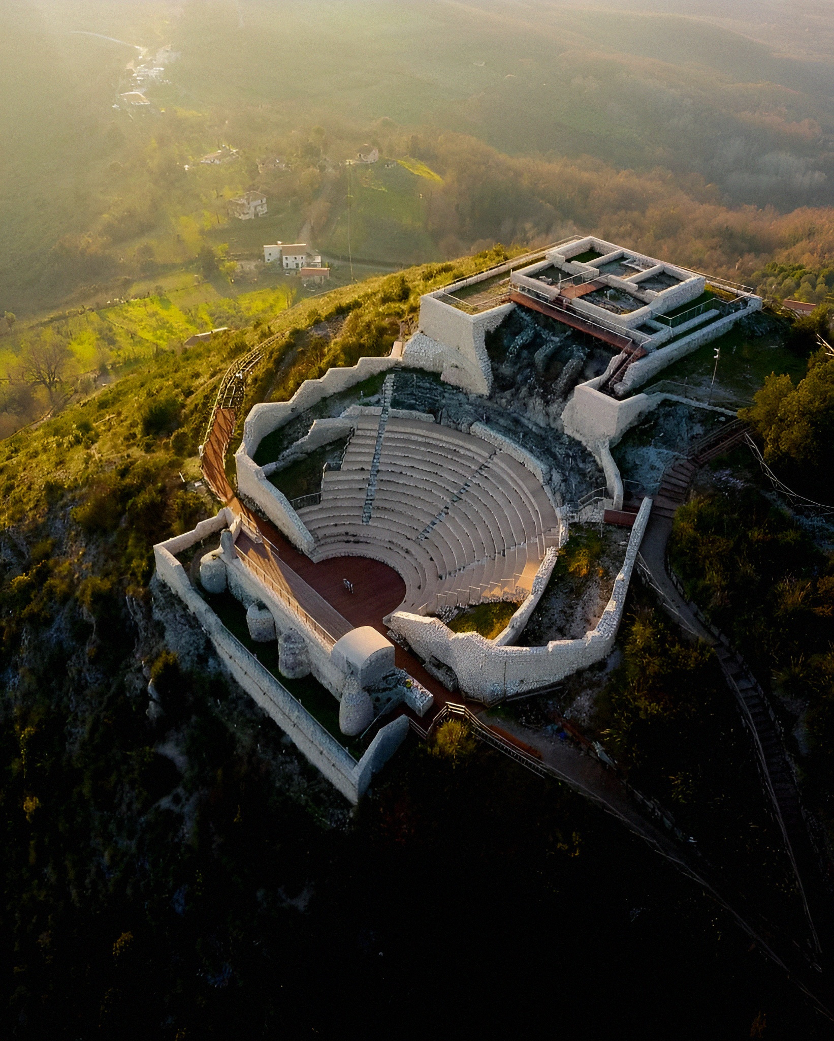 2000년대 초 이탈리아 카세르타 Caserta 지방 피에트라바이라노 Pietravairano에 있는 몬테 산 니콜라 Monte San Nicola에서 발견된 사원 극장 단지 Temple-theater complex 라는 데라고 하는데 물론 나는 못 봤다.