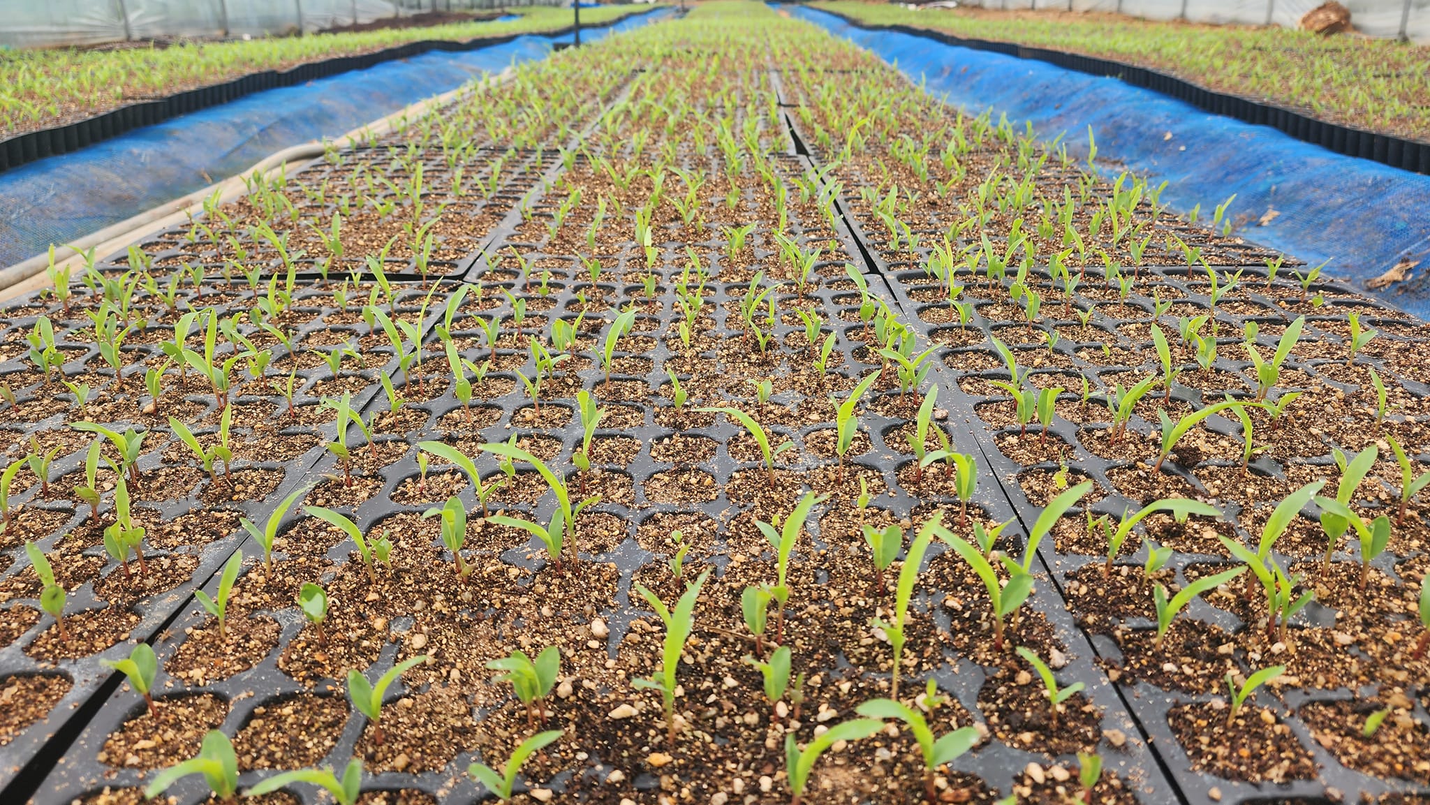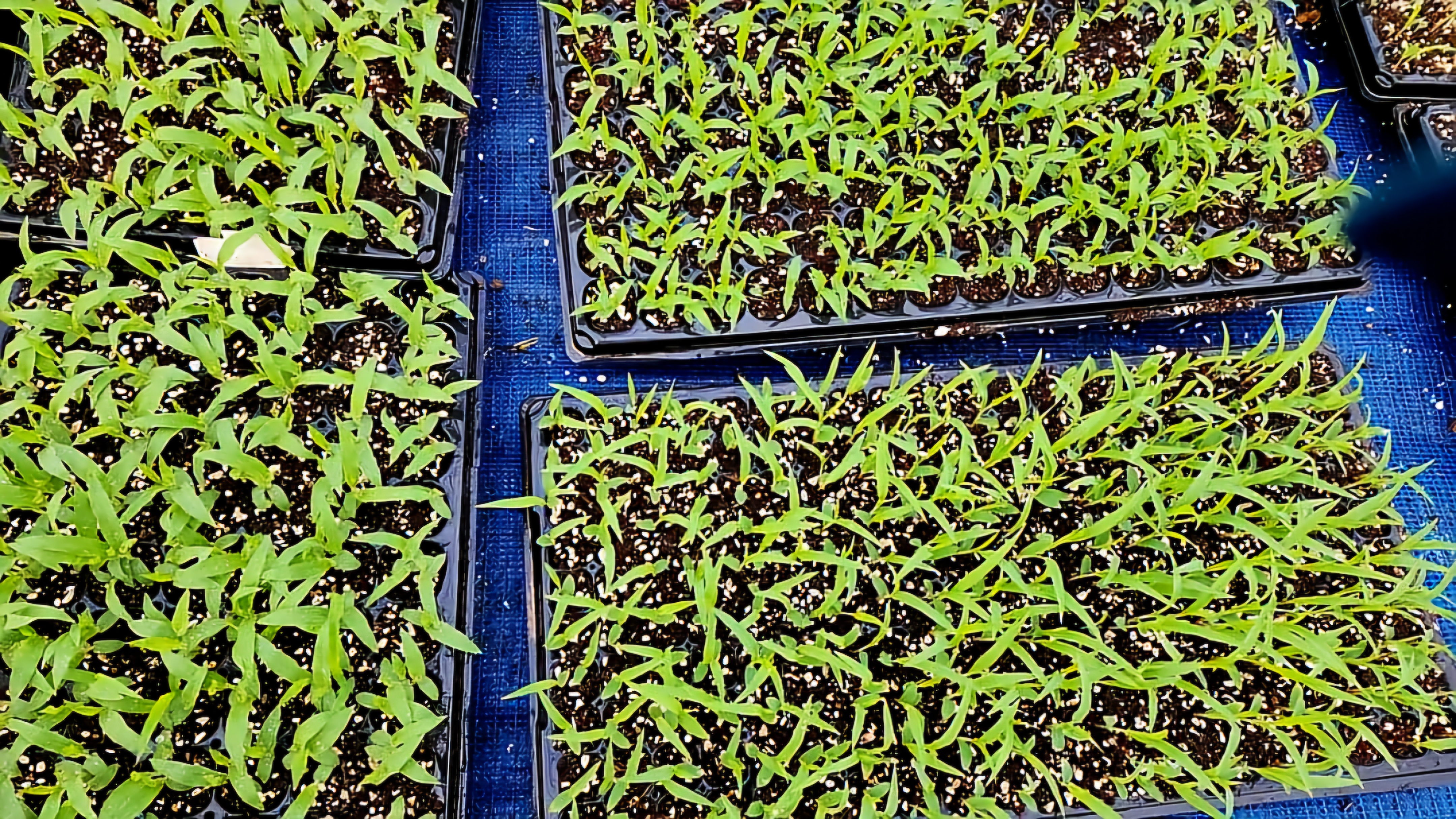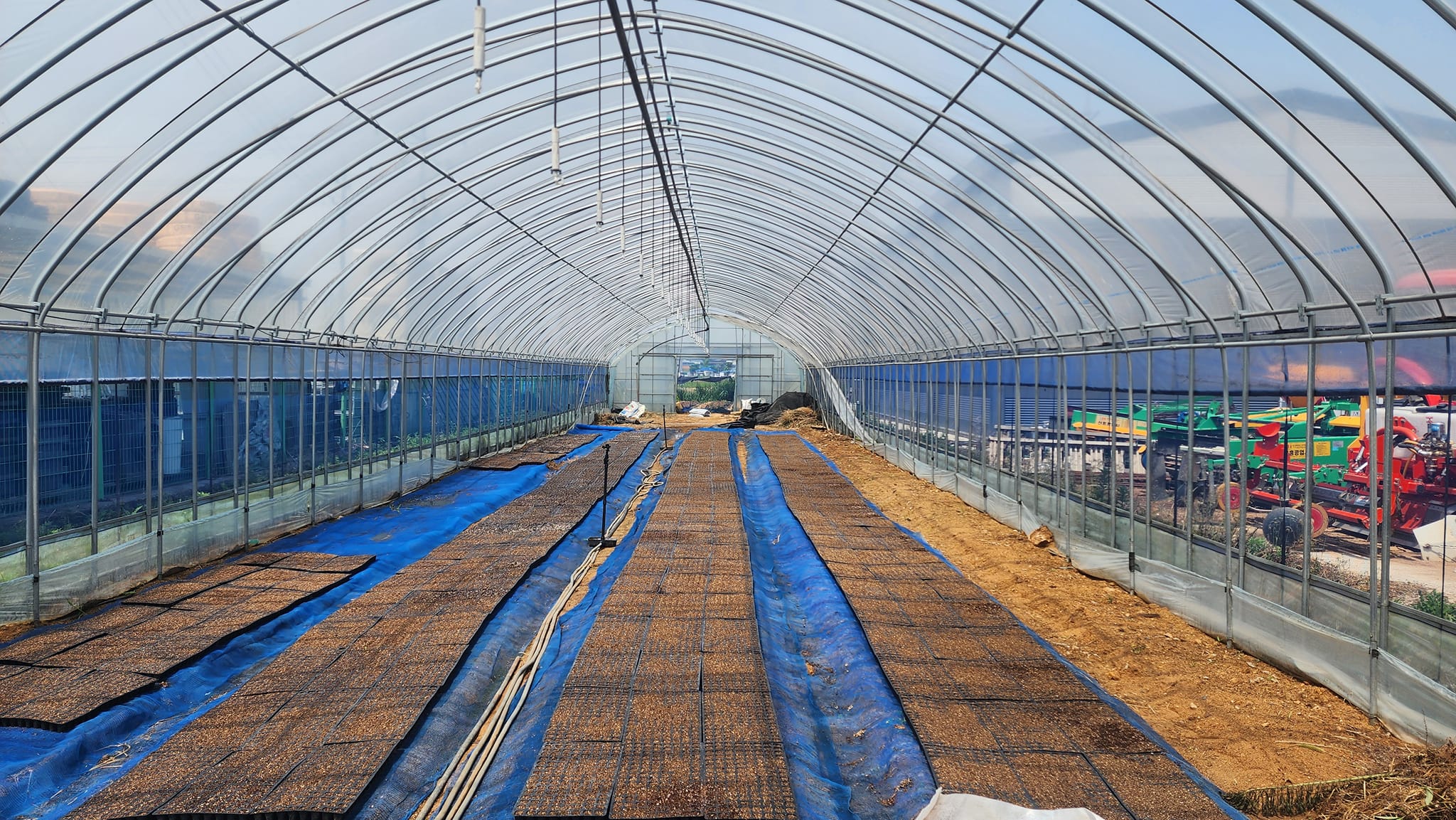 종자가 시원치 않아 추가로 더 파종하다 보니 400판이 넘는 수수모가 시퍼렁 시퍼렁 하다.