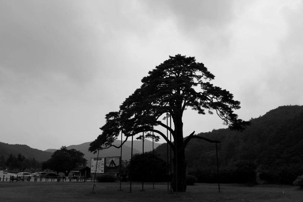 The pine tree has gone through a lot of damage. Subsequently, a large-scale screen was once installed to protect against Solliphokpari (Thecodiplosis japonensis) attack.