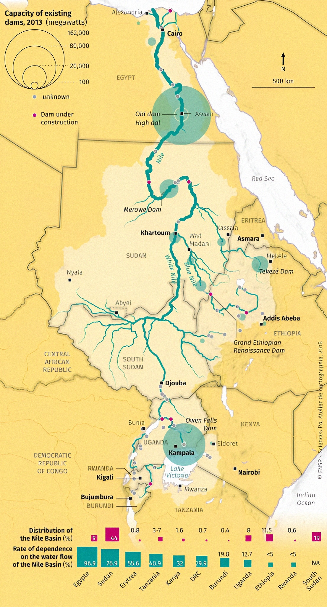 이 지도를 보면 나일강 분지 Nile River Basin 가 형성되는 지점을 본다.