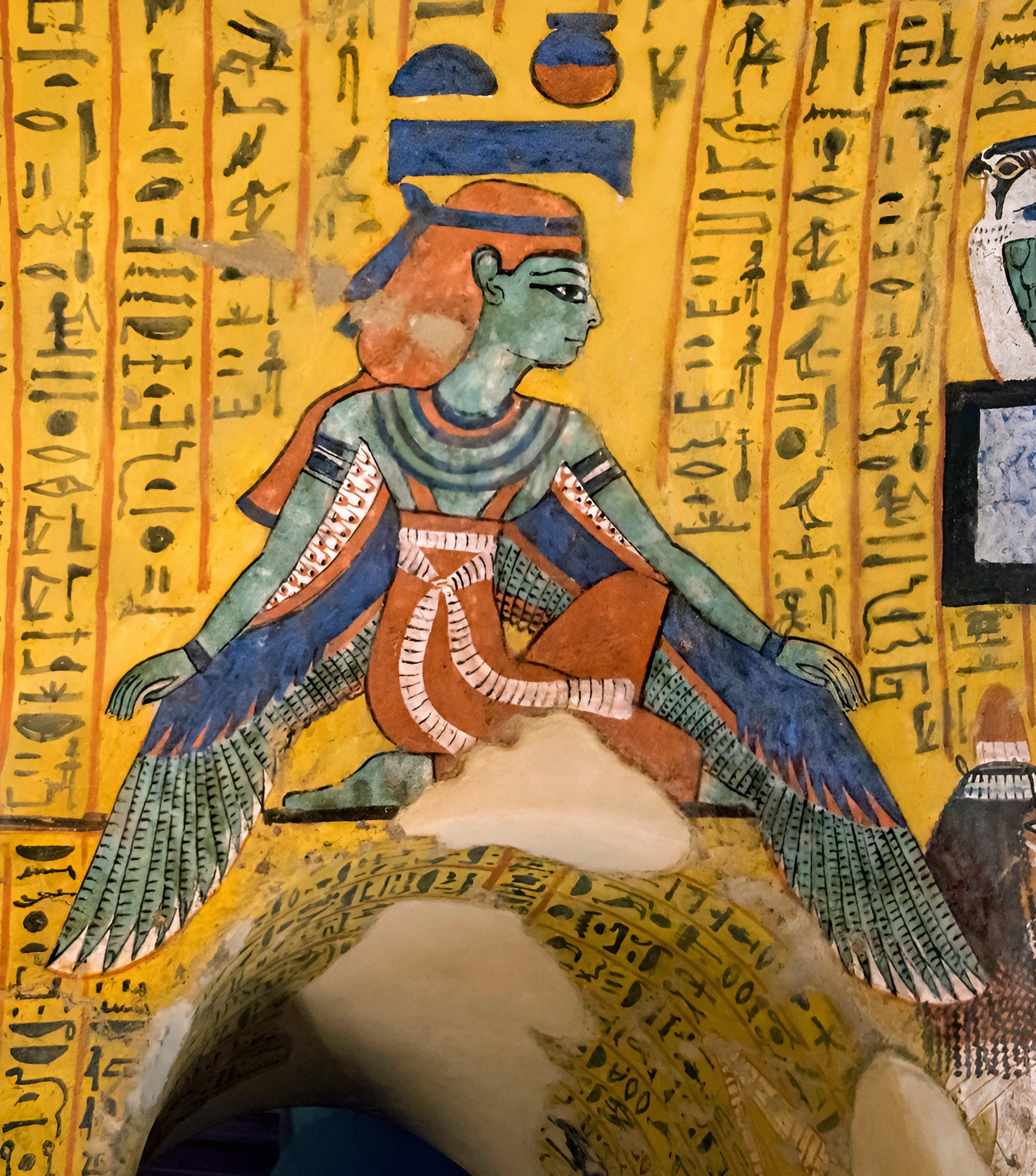 이 장면은 룩소르에서 나일강 건너편에 있는 고대 마을 데이르 엘 메디나 Deir el-Medina 소재 이리네페르 Irynefer 무덤(TT290)에서 발견된다.