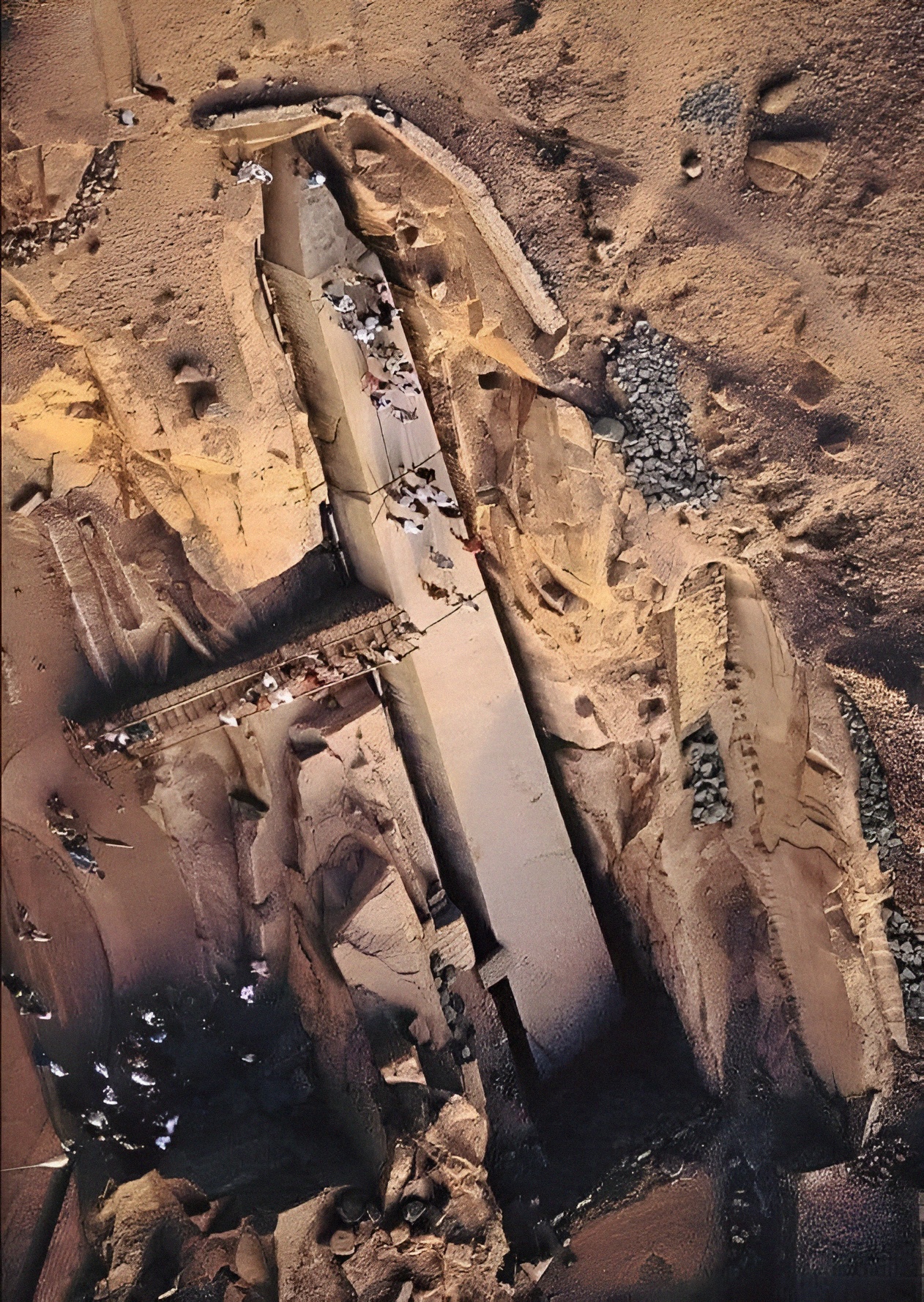 이집트 아스완 Aswan 에 있는 3500년 된 화강암 채석장 granite quarry 소재 '미완성 오벨리스크 Unfinished Obelisk' 항공사진