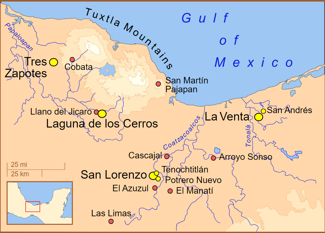 주된 지점은 지금의 멕시코 경내 베라크루즈 Veracruz 와 타바스코 Tabasco 주 일대 열대 저지대다.