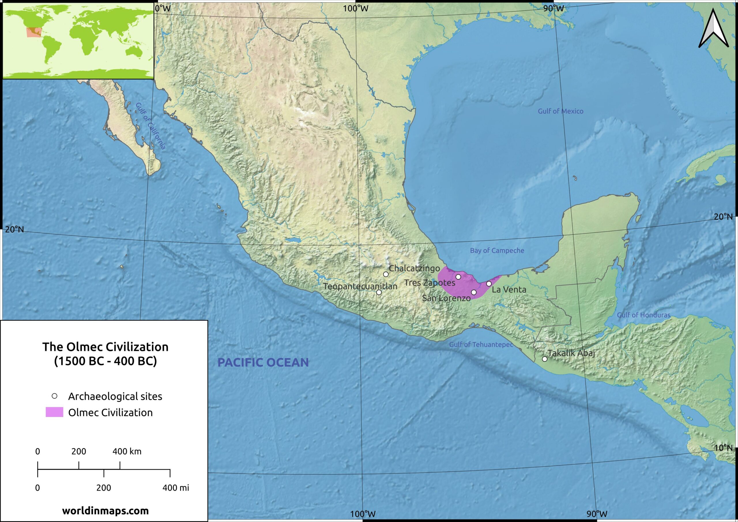 올멕 문명 위치는 다음과 같다.