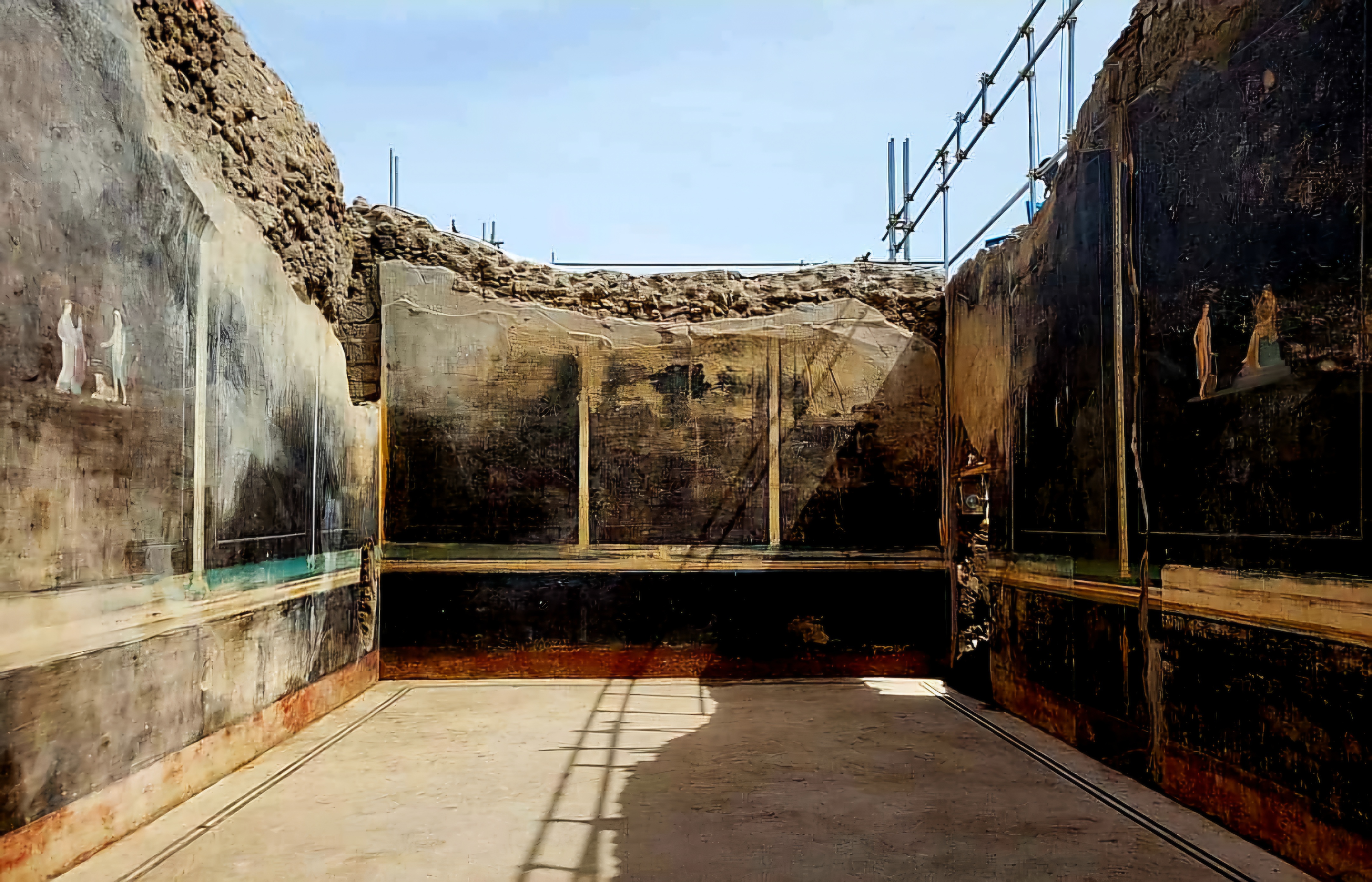 근자 폼페이 유적 발굴에서 공개된 내용을 보면 내부를 온통 검게 색칠한 비름빡에다가 흰색 물감으로 아주 작은 벽화들을 그려놓은 것으로 드러났다는 내용이 주류거니와