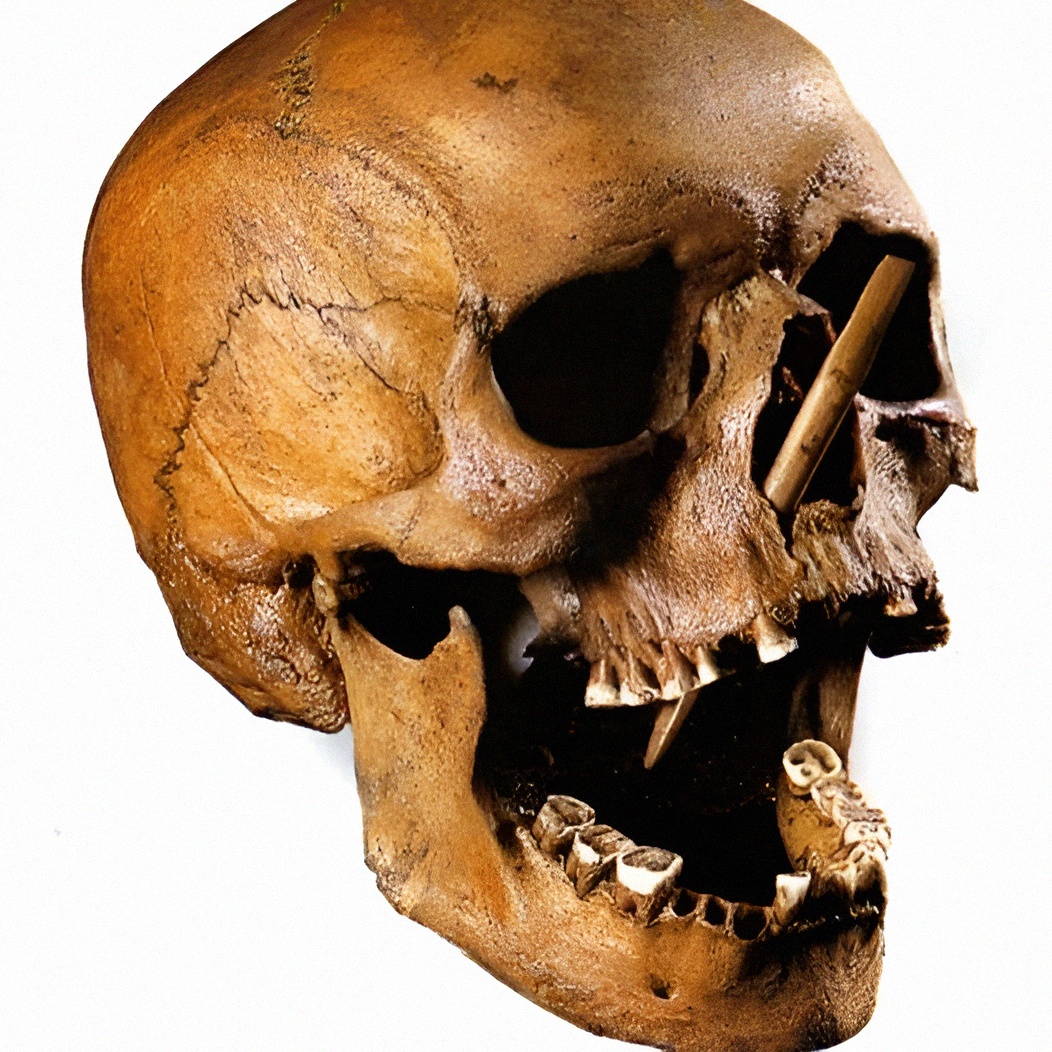 코를 통해 두개골에 들어간 105mm 길이 화살이 박힌 상태였다.