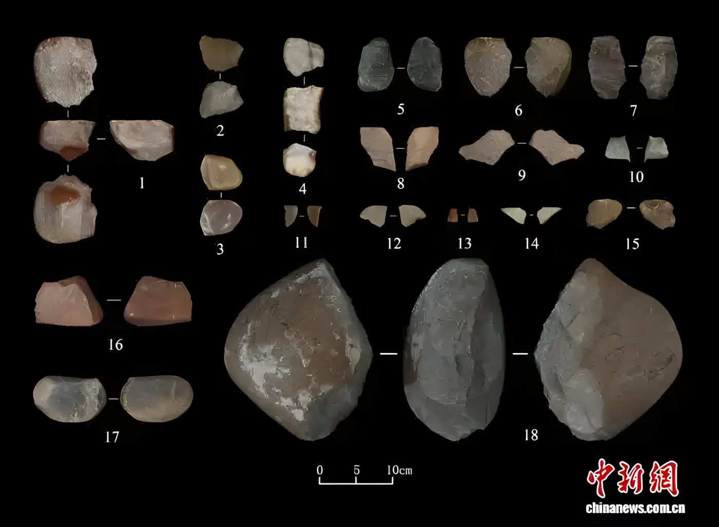 이번에 새롭게 발견된 유림시榆林市 부곡현府谷县 황하 유역 구석기 유적 10곳은 모두 노천 유적으로, 총 150점 석기가 출토되었다.