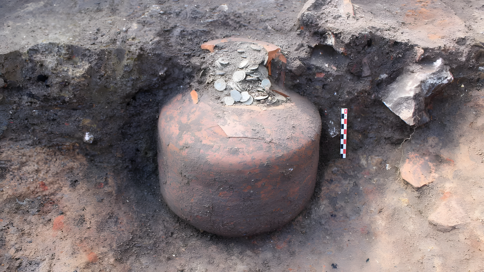 동전으로 채운 암포라는 한 주택 거실 잘 만든 구덩이에 조심스럽게 파묻혔다.