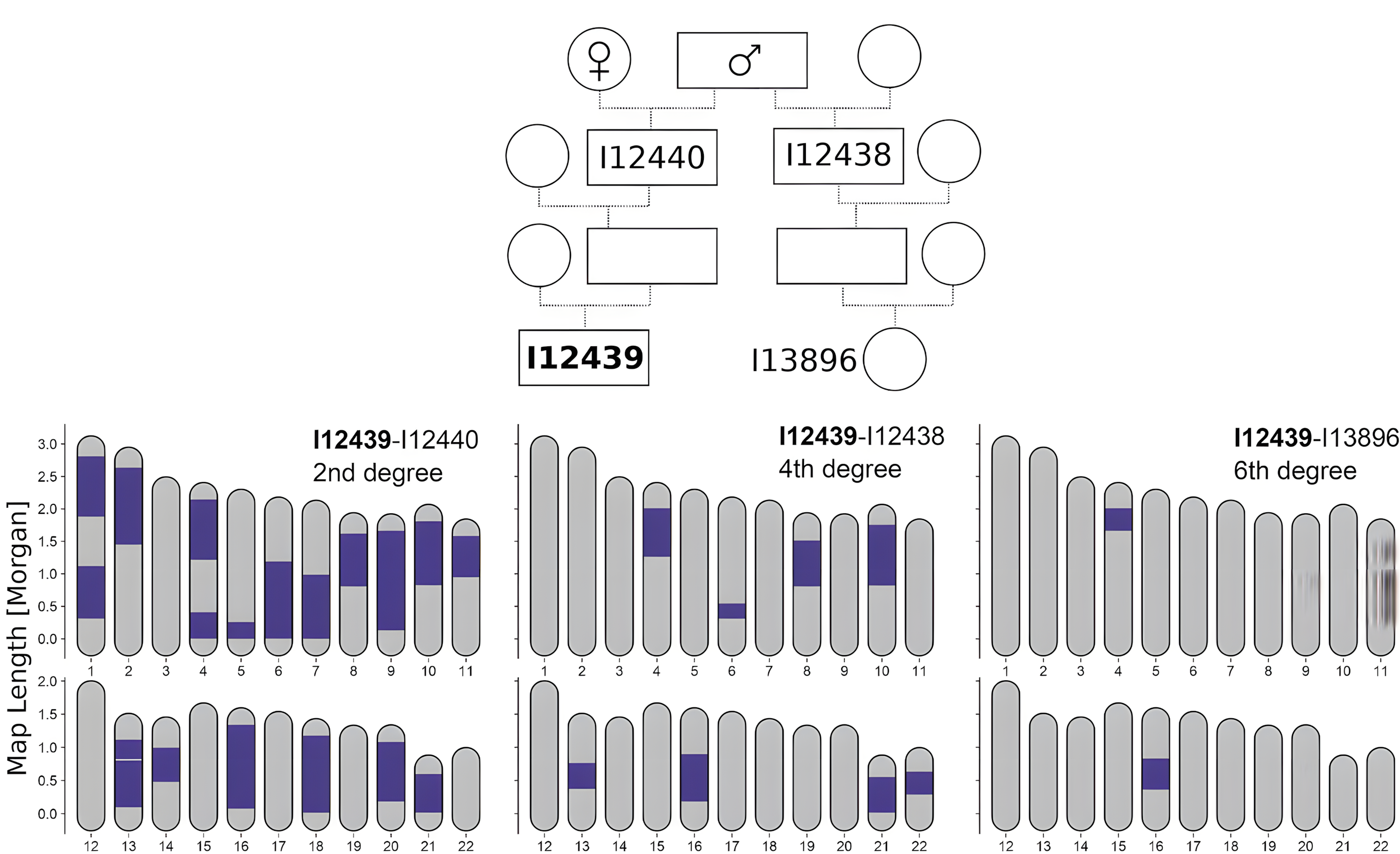 6촌 이내 친척, 즉 2촌에서 3촌 사이 또는 6대손 관계까지는 여러 개 IBD(Identity-Based Dependent, 동족 유전자)를 공유하는 경우가 있다.