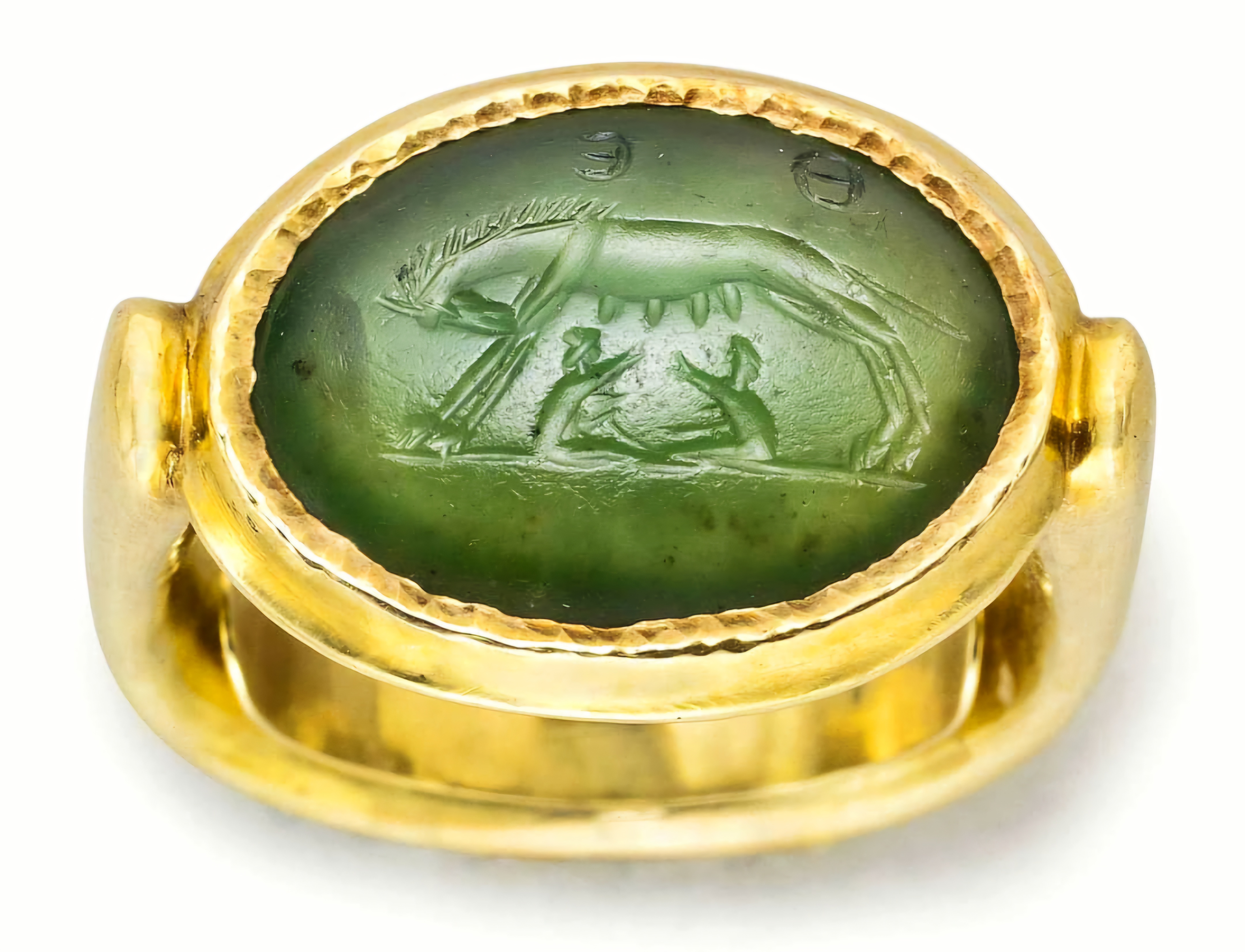 저는 기원전 1세기 무렵 로마시대 gold and green chalcedony로 제작한 ring 이라고.