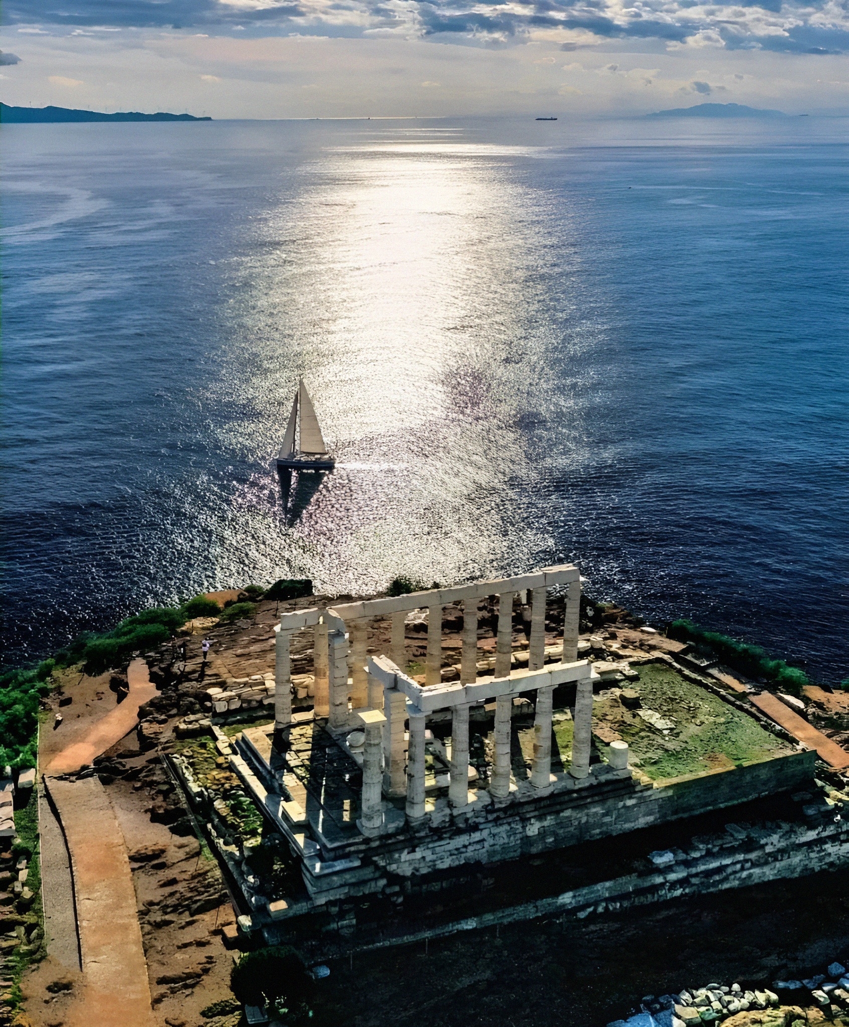 에게 해 Aegean Sea 를 내려다보이는 아티카 반도 Attica peninsula 최남단에 자리 잡은 이 신전은 기원전 5세기 아테네 황금시대 Golden Age of Athens 에 건축되었다.