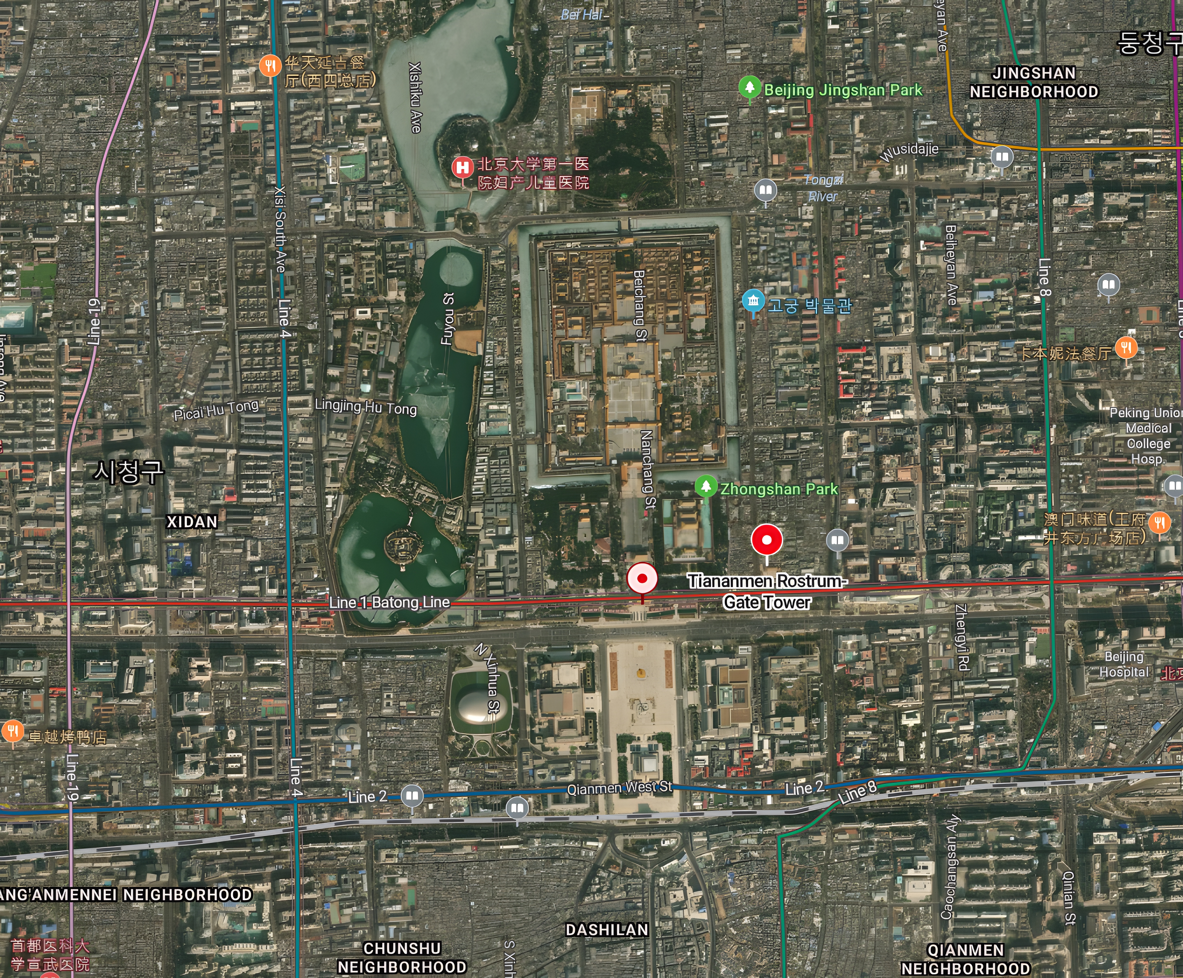 역사적인 베이징 중심부를 남북으로 가로지르며, 중심축은 이전의 황궁과 정원, 제사시설, 그리고 의례적이고 공공적인 건물들로 구성되어 있다.