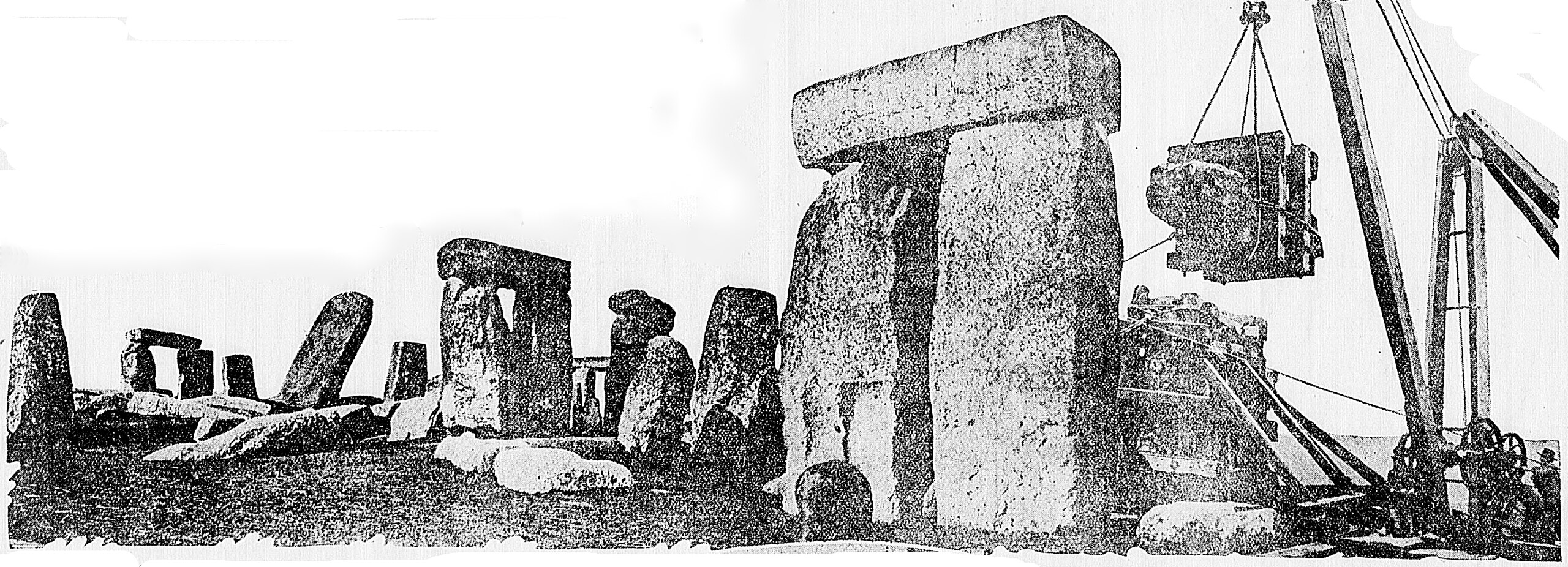 윌리엄 가울랜드William Gowland는 1901년 이 기념비 첫 번째 주요 복원 작업을 감독했는데, 여기에는 낙하 위험에 처한 56번 사르센 스톤sarsen stone을 곧게 펴고 콘크리트를 세우는 작업이 포함되었다.
