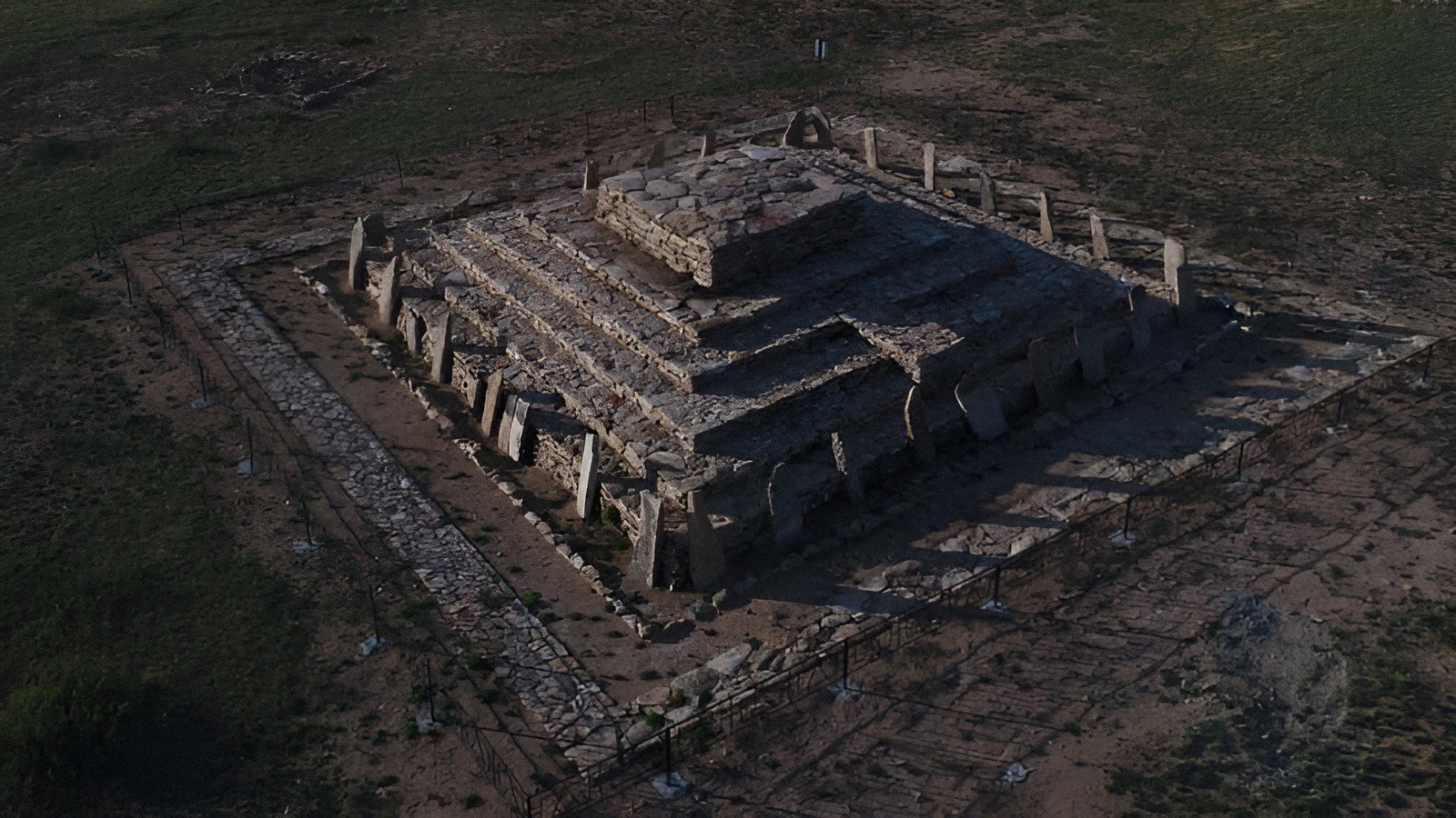 탈디 강 Taldy River 을 조망하는 언덕에 자리잡은 계단식 이 피라미드는 안드로노보 시대 Andronovo period 마지막 단계(기원전 2000-1150년)에 번성한 청동기 시대 후기 문화인 베가지 단디베이 문화 Begazı Dandibay culture 통치자를 위한 묘소 복합체 mausoleum complex 로 추정된다고.