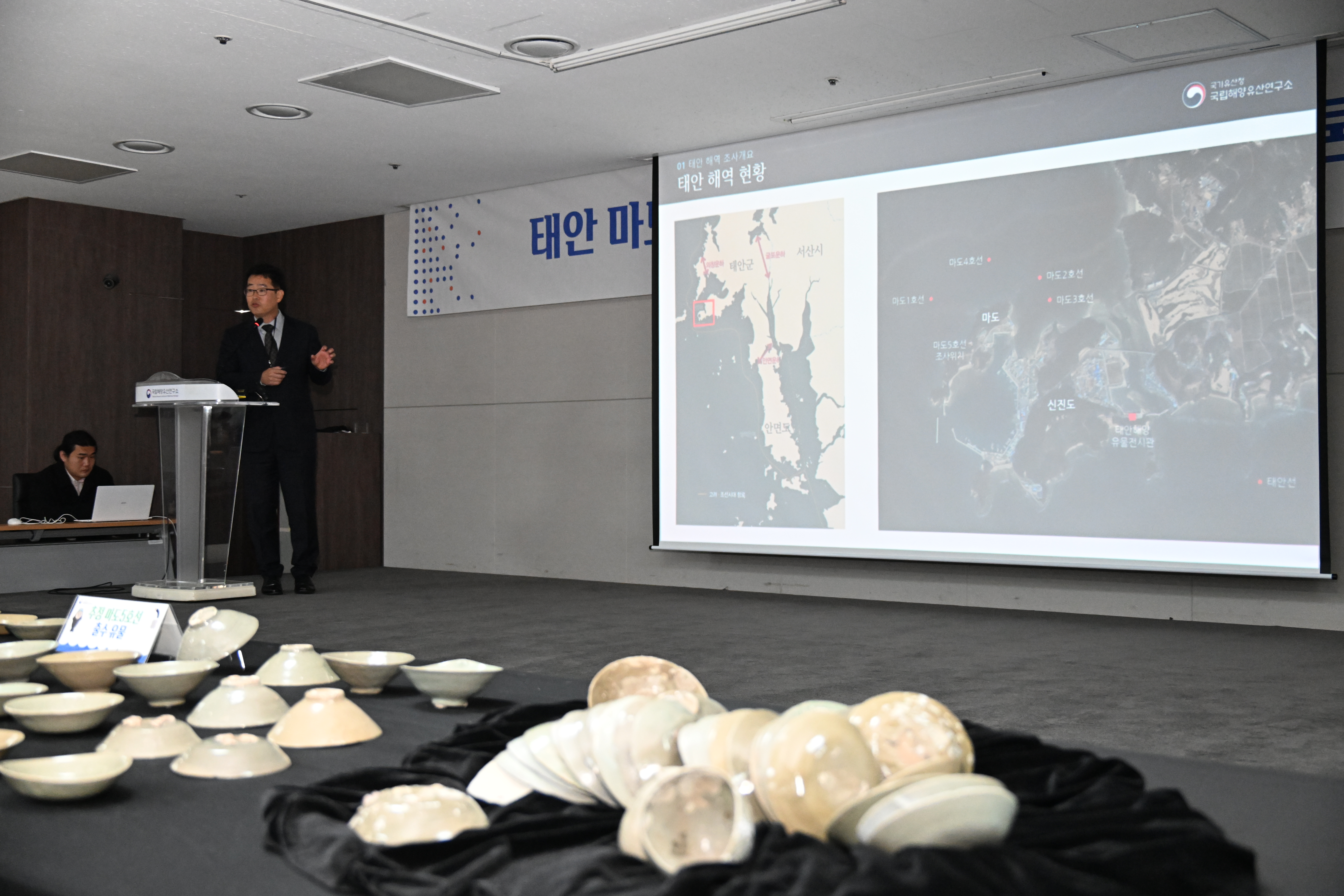 국립해양문화재연구소가 오늘 10일 국립고궁박물관에서 2025 태안 마도 해역 발굴조사 성과를 공개했으니