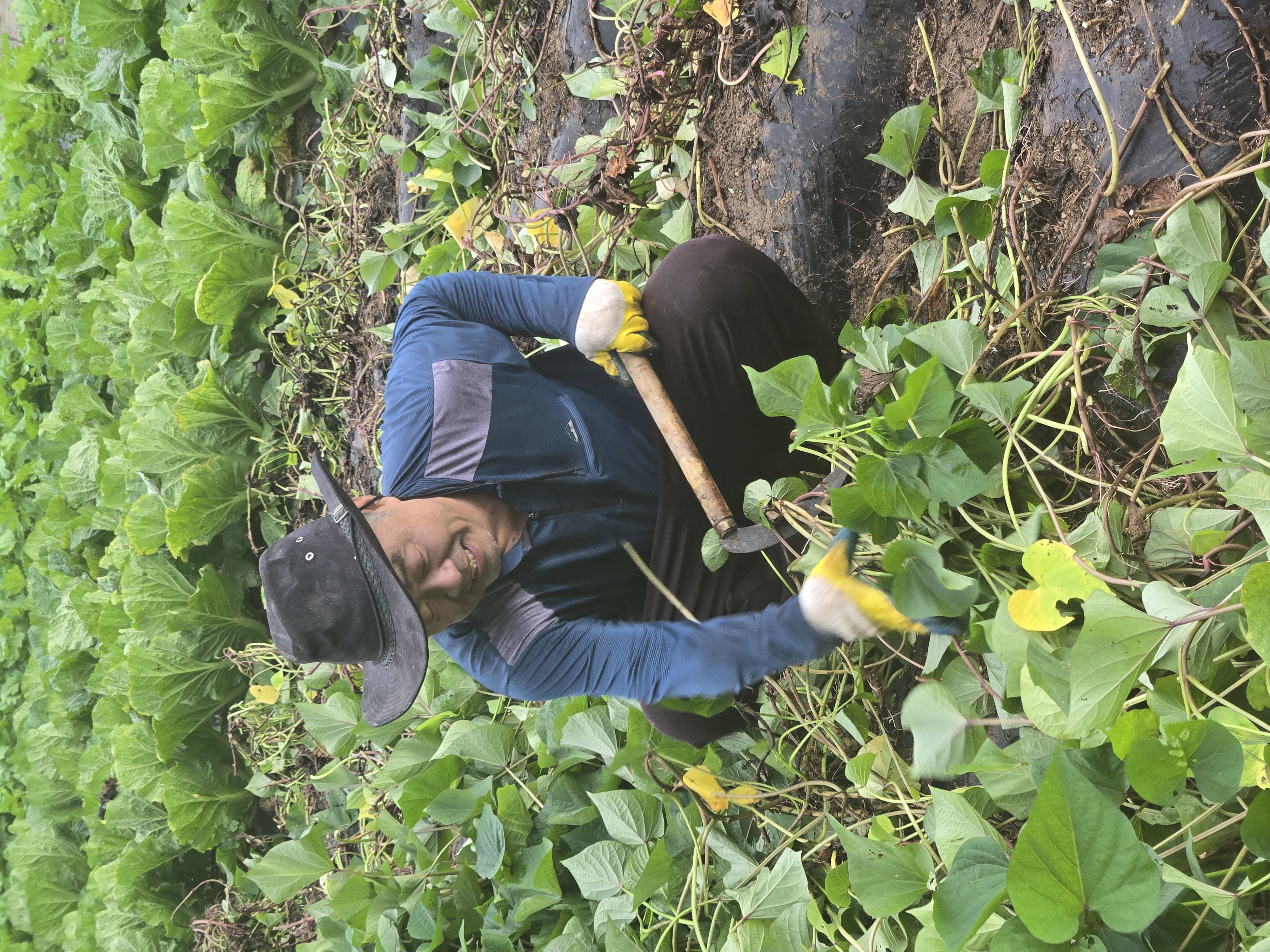 고구마 수확은 크게 순 자르기, 캐기, 그리고 나르기로 삼분하겠거니와 그 각각이 고되기는 마찬가지라