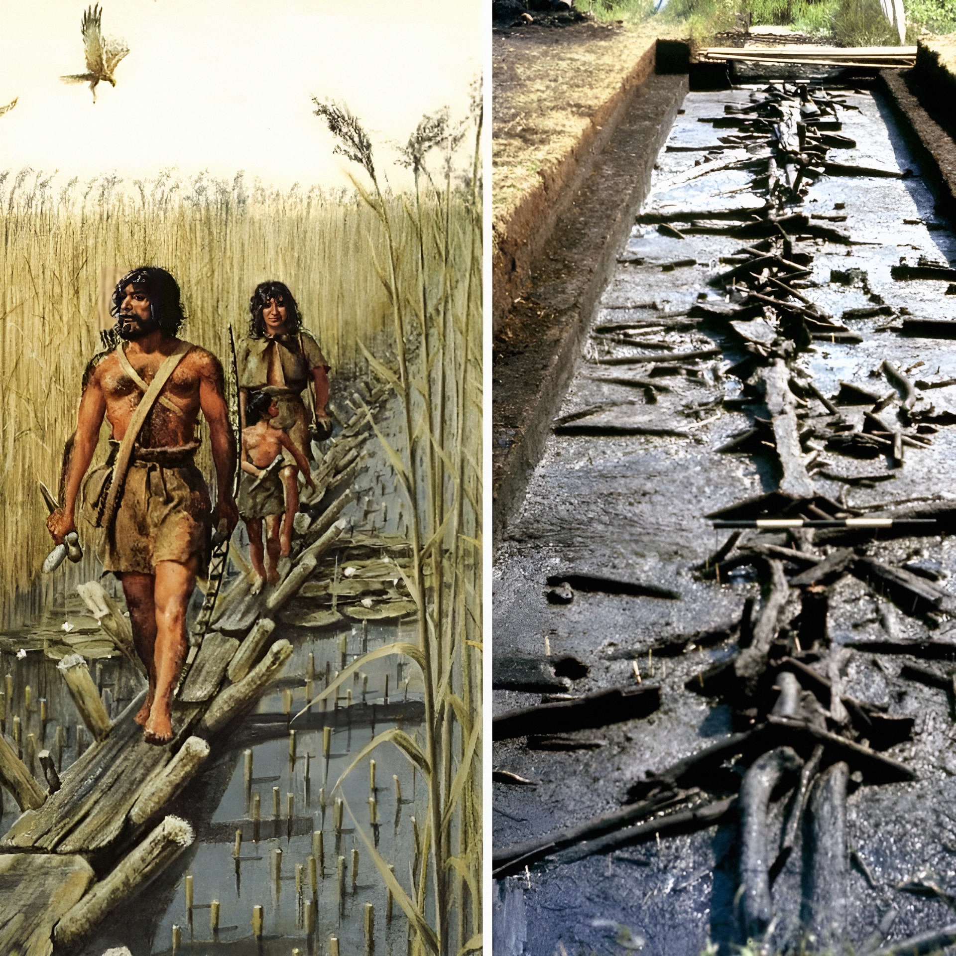 영국 서머싯 레벌스 Somerset Levels에서 발견된 고대 목재 트랙웨이 timber trackway 다.
