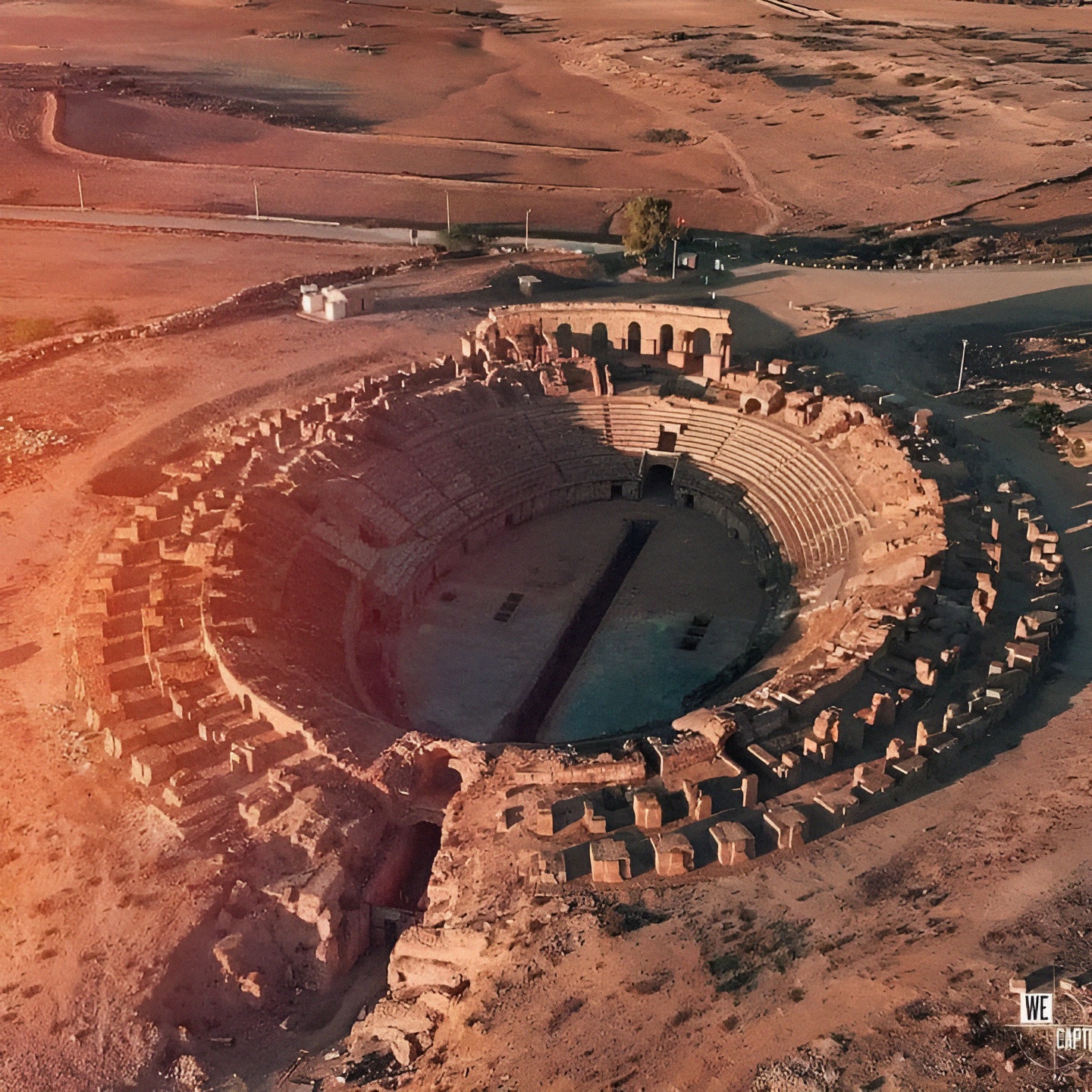 하드리아누스 Hadrian (117~138) 통치 시기로 거슬러 올라가며, 크기는 113m x 90m이고 수용규모는 약 1만6천 석이다.