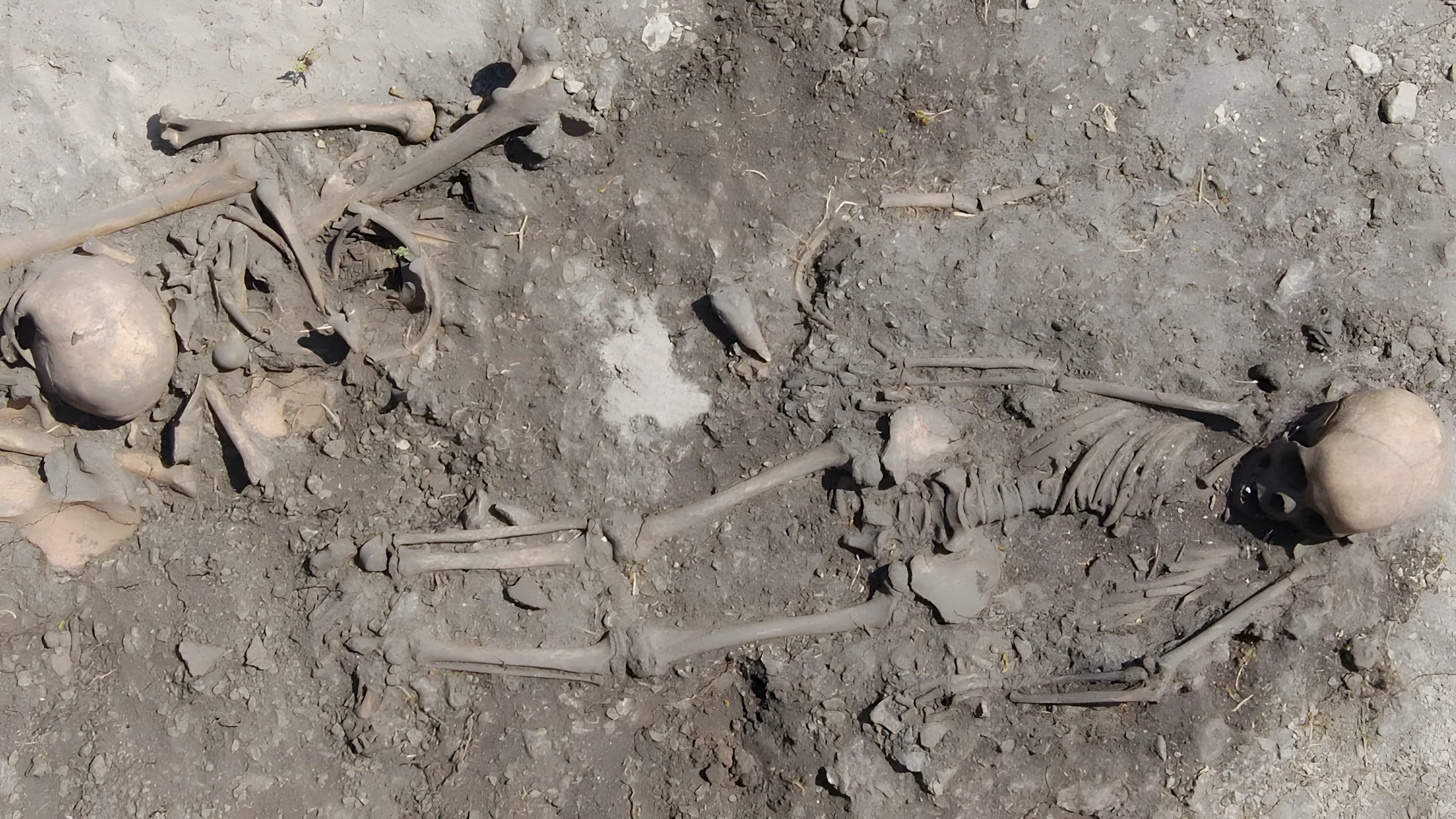 한 무덤에서는 발굴자들이 성인 여성 해골과 어린아이 두 명 해골을 발견했다.