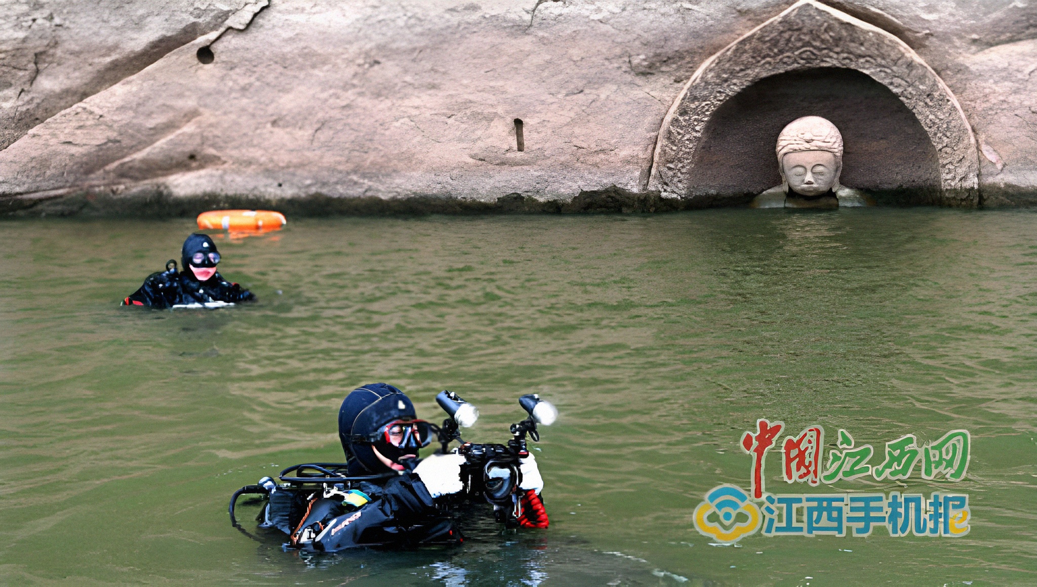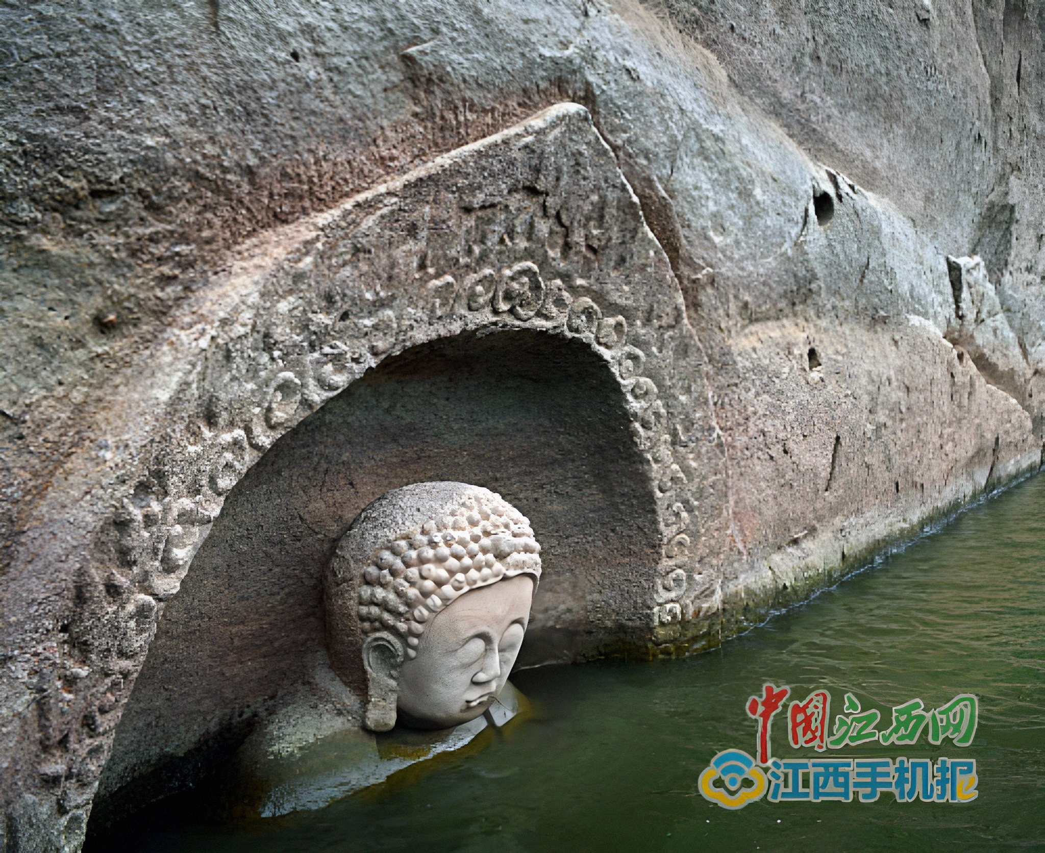 댐 건설로 수몰된 600년 전 명나라 시대 마애불이 저 무렵 물이 빠지면서 하필 머리만 노출되었을 때