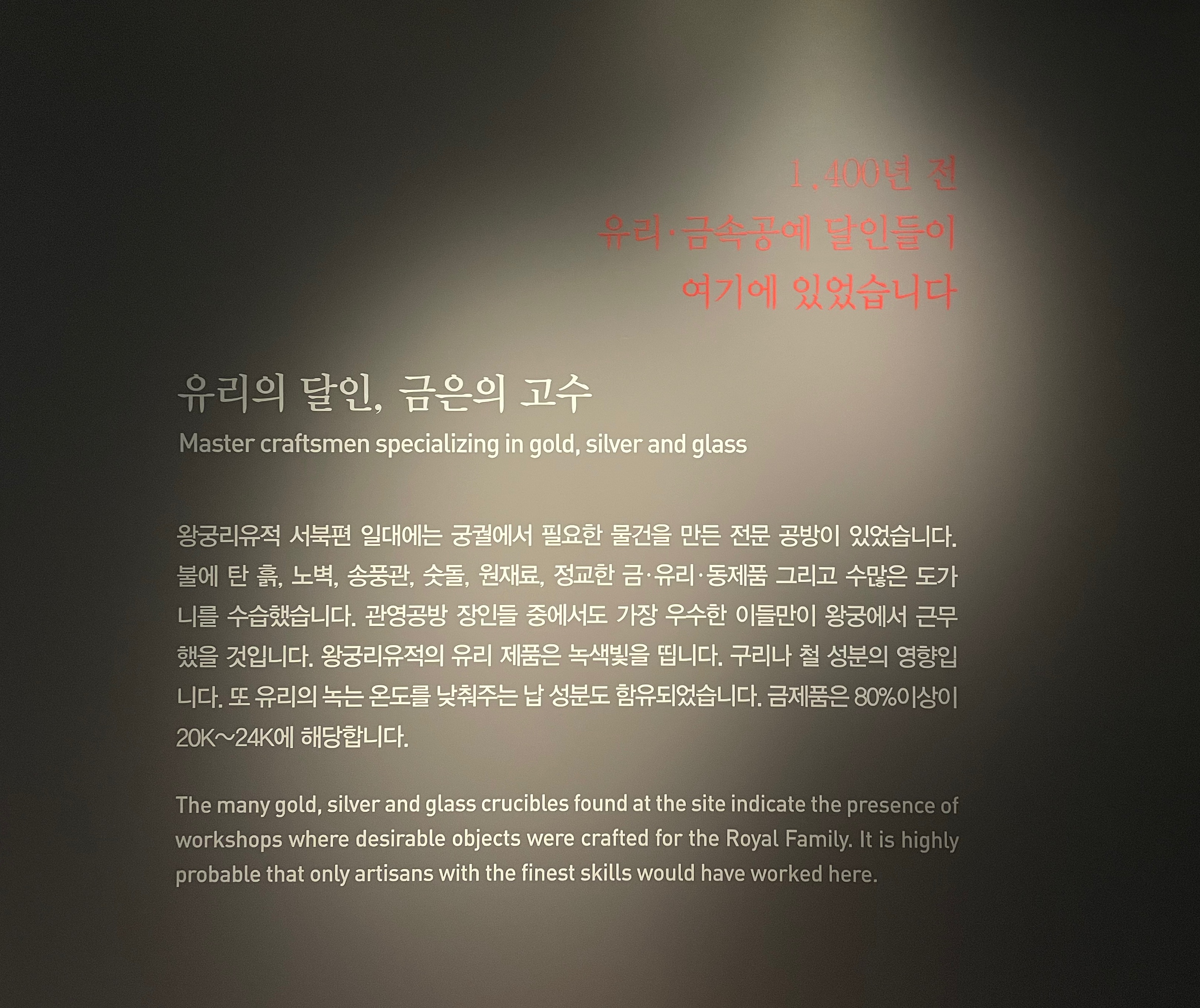 “1,400년 전 유리•금속 공예 장인들이 여기 있습니다.”
