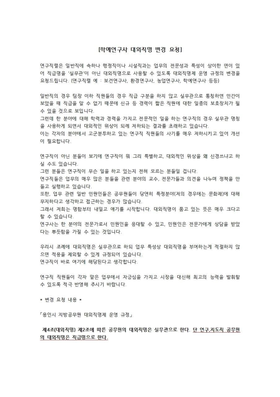 * 인사 담당자가 계속 바뀌면서 규정 변경은 흐지부지되고 말았지만, 현재는 시스템상에서 대외직명을 “지방학예연구사”로 변경하긴 했습니다.