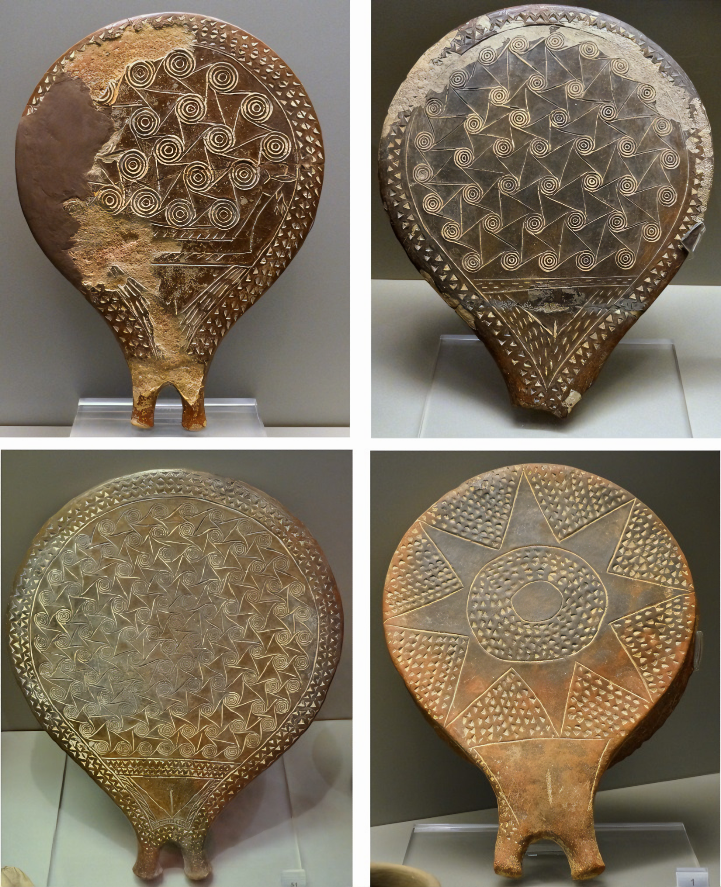 시로스Syros 섬 찰란드리아니Chalandriani 묘지가 출토한 초기 키클라데스 문명 2기 Early Cycladic II ‘프라이팬’들이다.