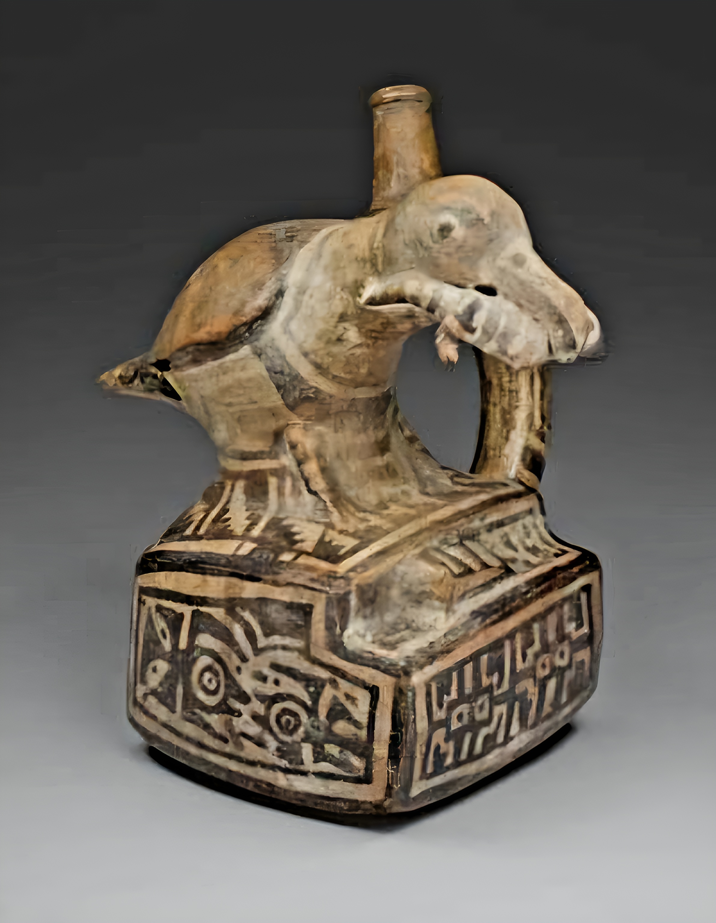 Spout vessel in the form of a Bird Eating a Lizard