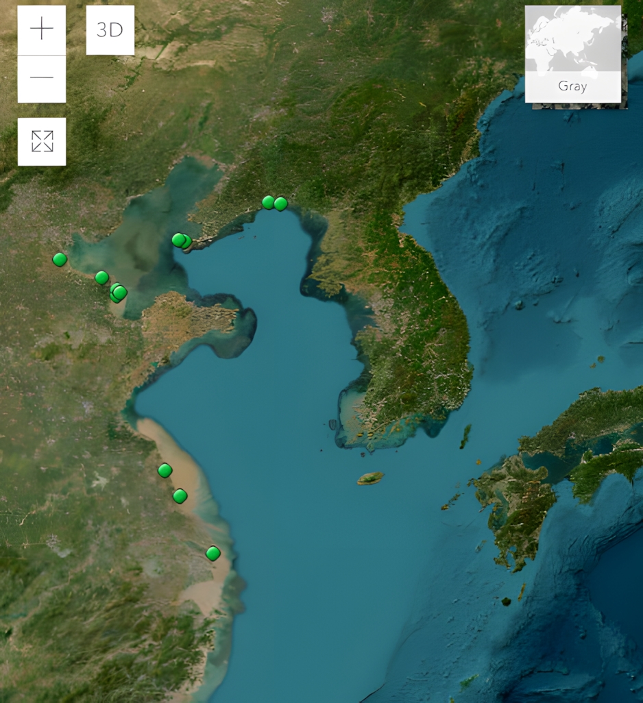 명칭이 Migratory Bird Sanctuaries along the Coast of Yellow Sea-Bohai Gulf of China (Phase II), 곧 중국 황해 발해만 해변 유역 철새도래지들이므로, 그에 따라서 그에 해당하는 지점들을 추가했다.