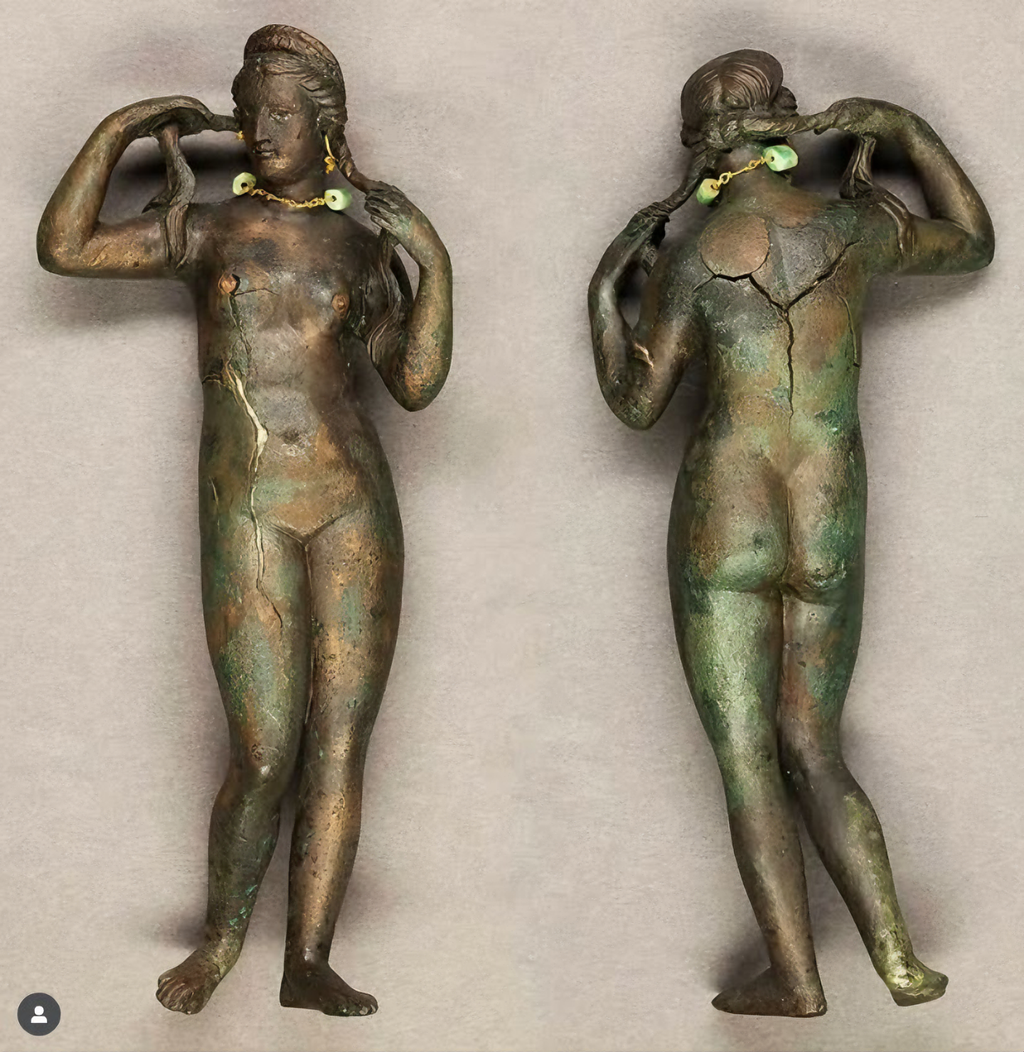 이 청동 조각상은 현재 레바논에 위치한 고대 도시 발베크Baalbek에서 발견된, 사랑과 미의 그리스 여신 아프로디테 아나디오메네Aphrodite Anadyomene 모습을 보여준다.