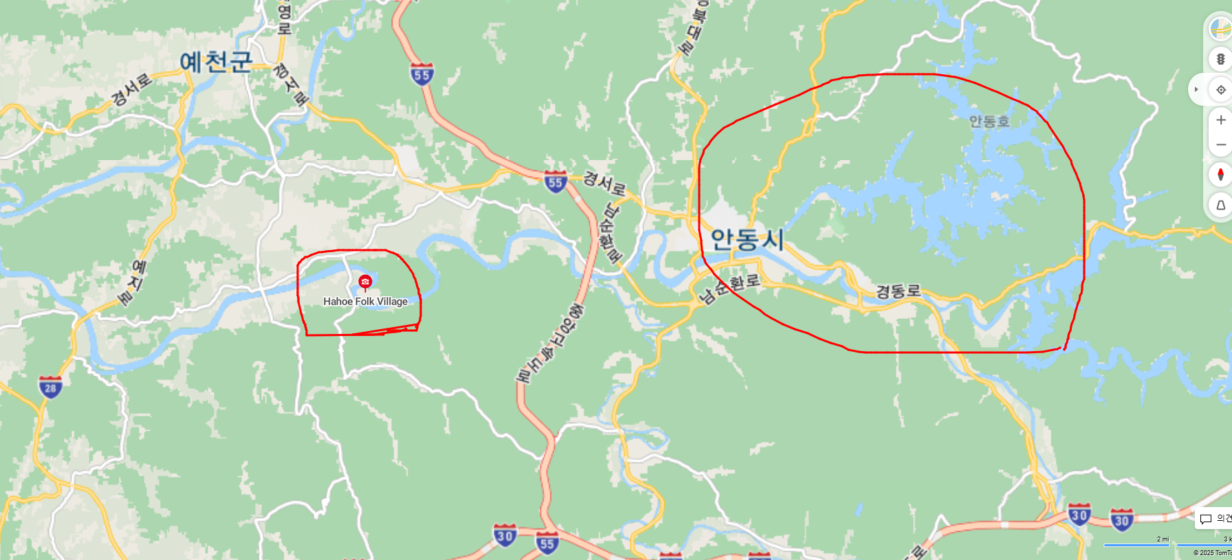 하회마을은 그나마 주변으로 저런 큰 강이나 흘러가지, 더구나 유사시 저런 물이 확보 가능하지, 그래서 산불 위협 지역보다는 그래도 대응 조치나 저에서 상대적으로 낫게 취할 수나 있지