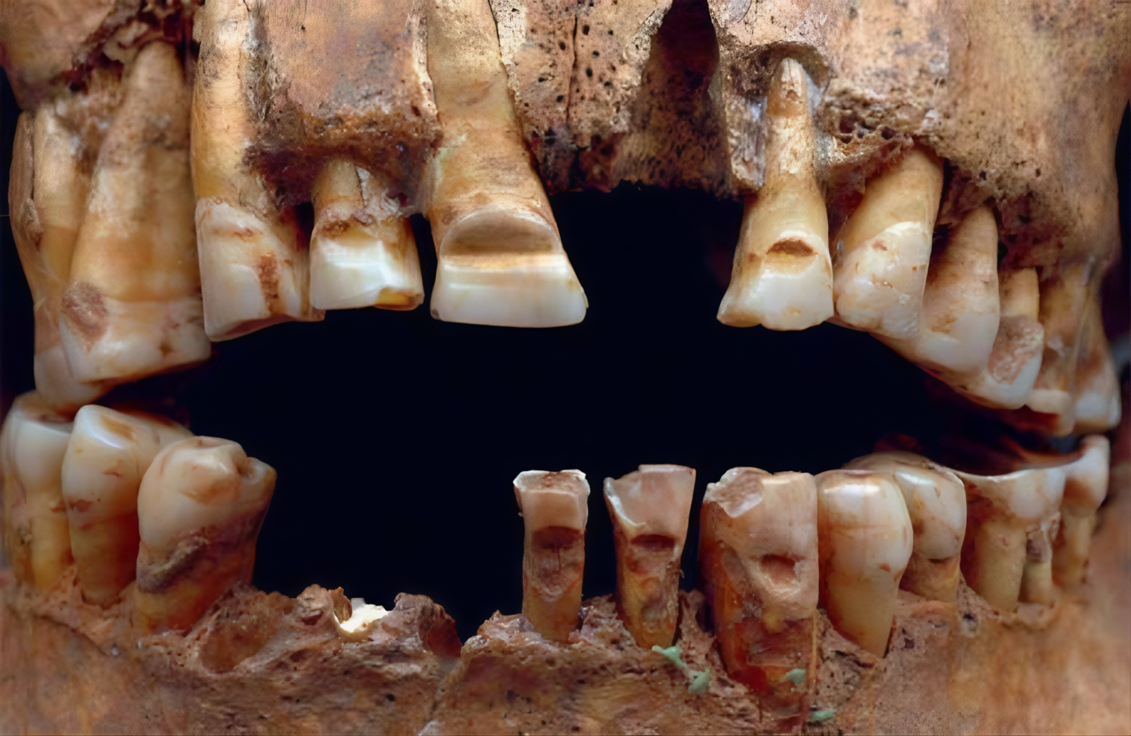 그곳에 묻힌 약 130명 유골을 조사했는데 대부분 성인 남성이었고 많은 남성이 앞니에 선이나 홈을 새겼다는 점이 그것이다.