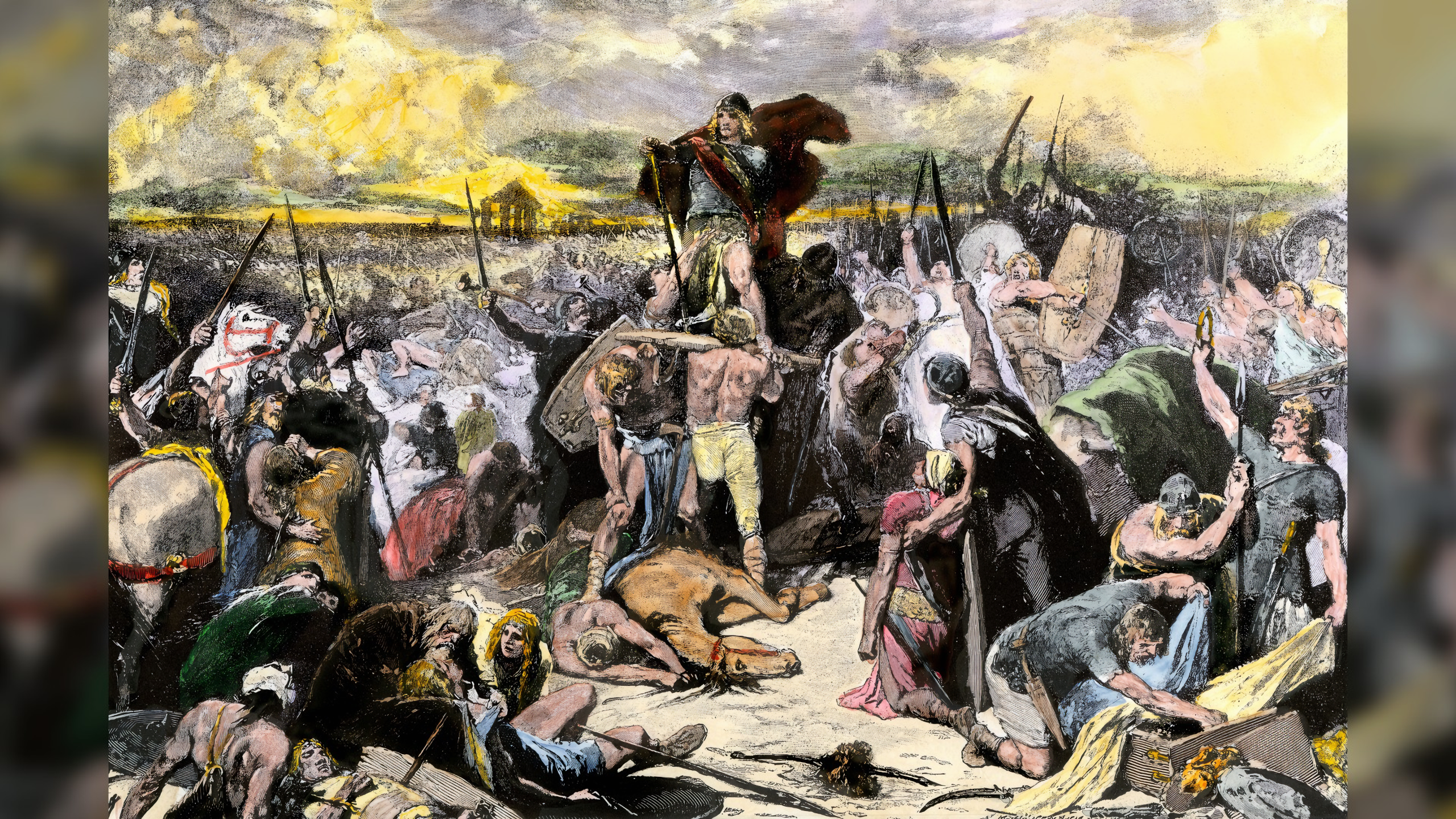 서기 454년 네다오 전투Battle of Nedao에서 게피드족Gepids 왕 아르다릭Ardaric이 이끄는 게르만 연합군이 훈족 군대를 격파했다.