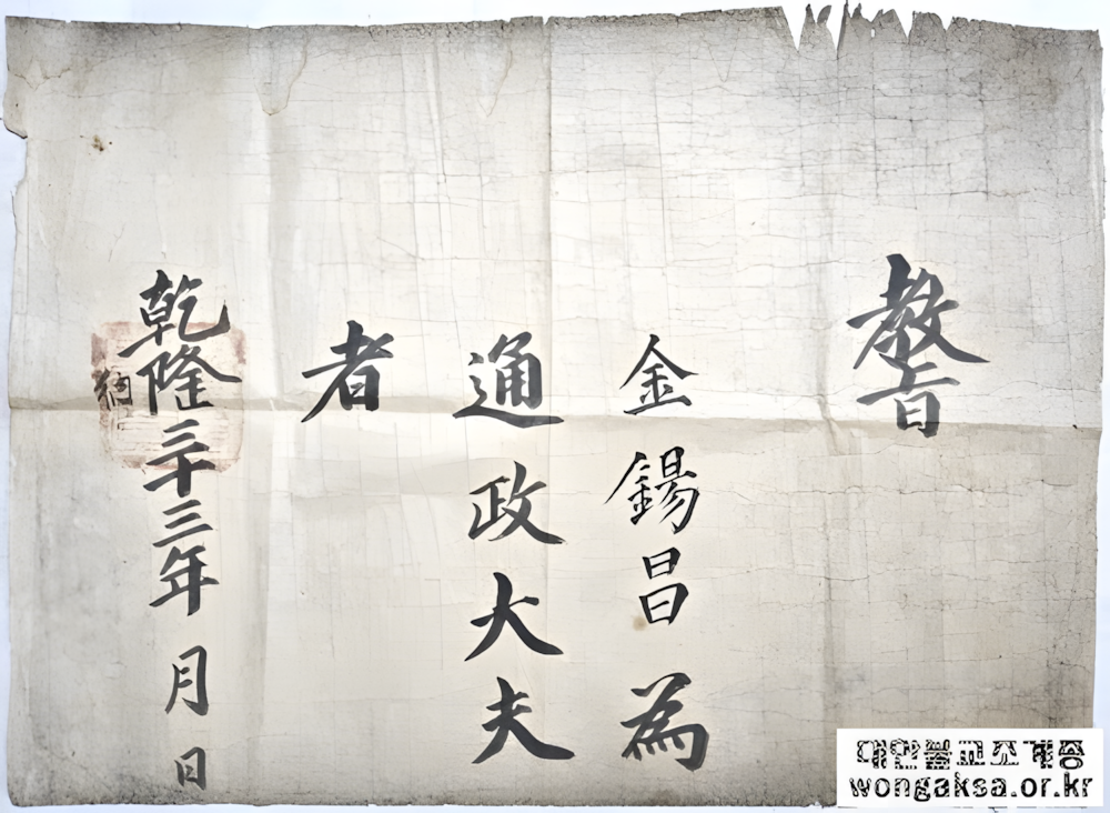 정부에서 흉년 때 납속 등의 댓가로 발부한 공명첩-.
