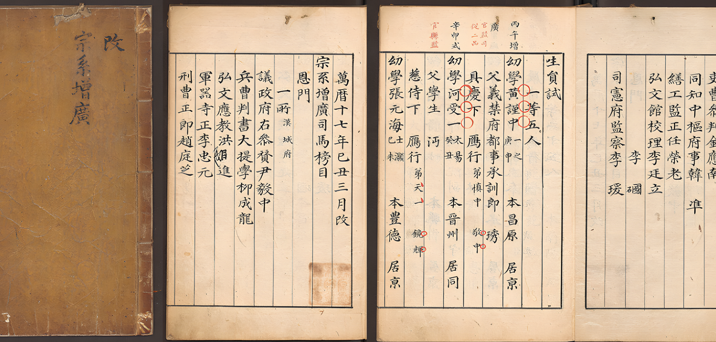 첫째는 과거 입격, 출신, 급제자 프로필을 모아 놓은 방목榜目,